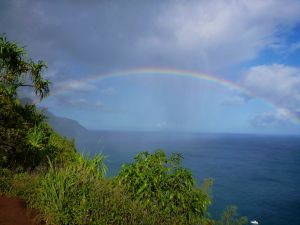 I started with a run and Mike started with a trail run on the Kalalau Trail. It was showery on and off, a relief on the run and bonus for rainbows on the trail.