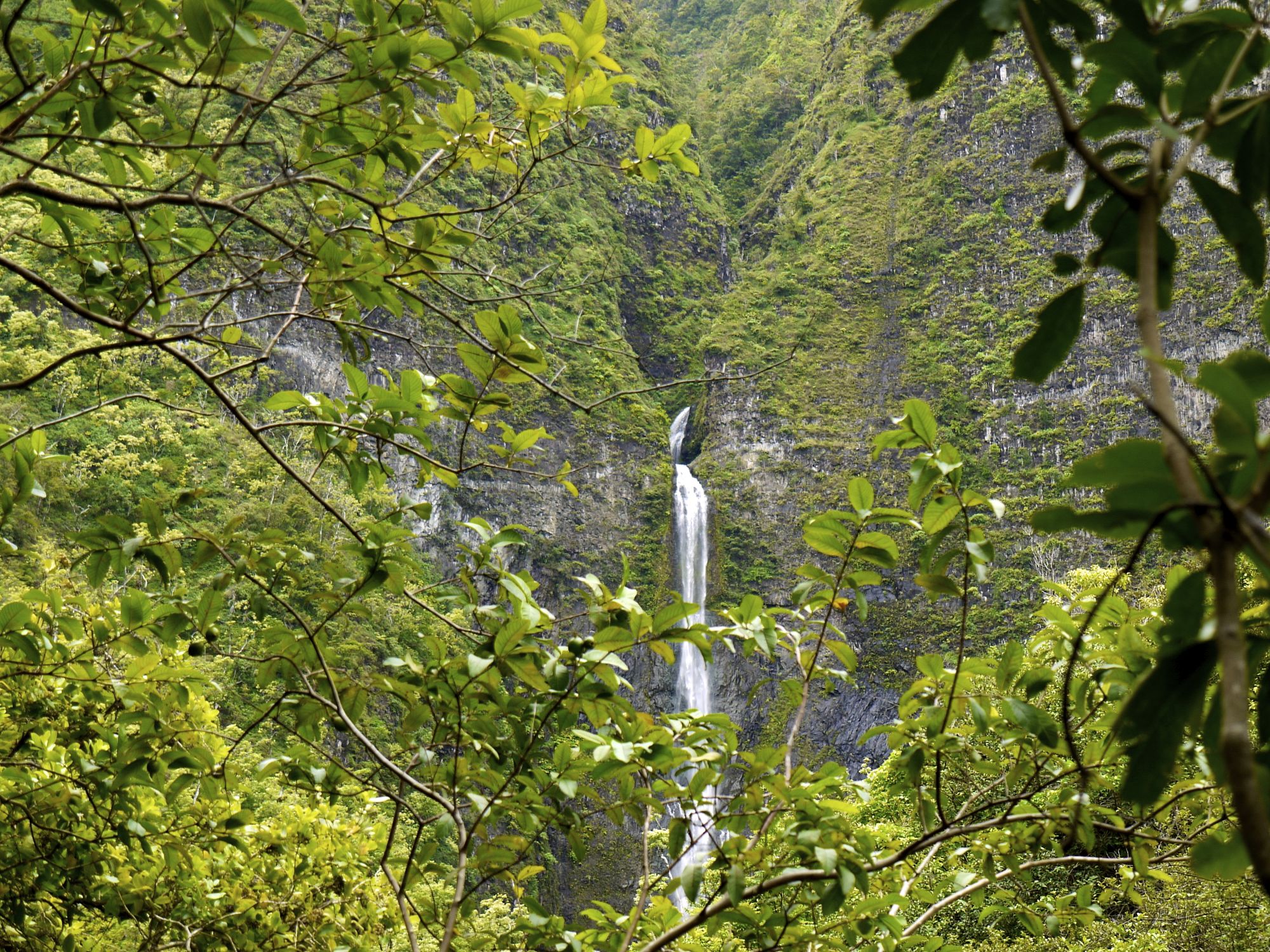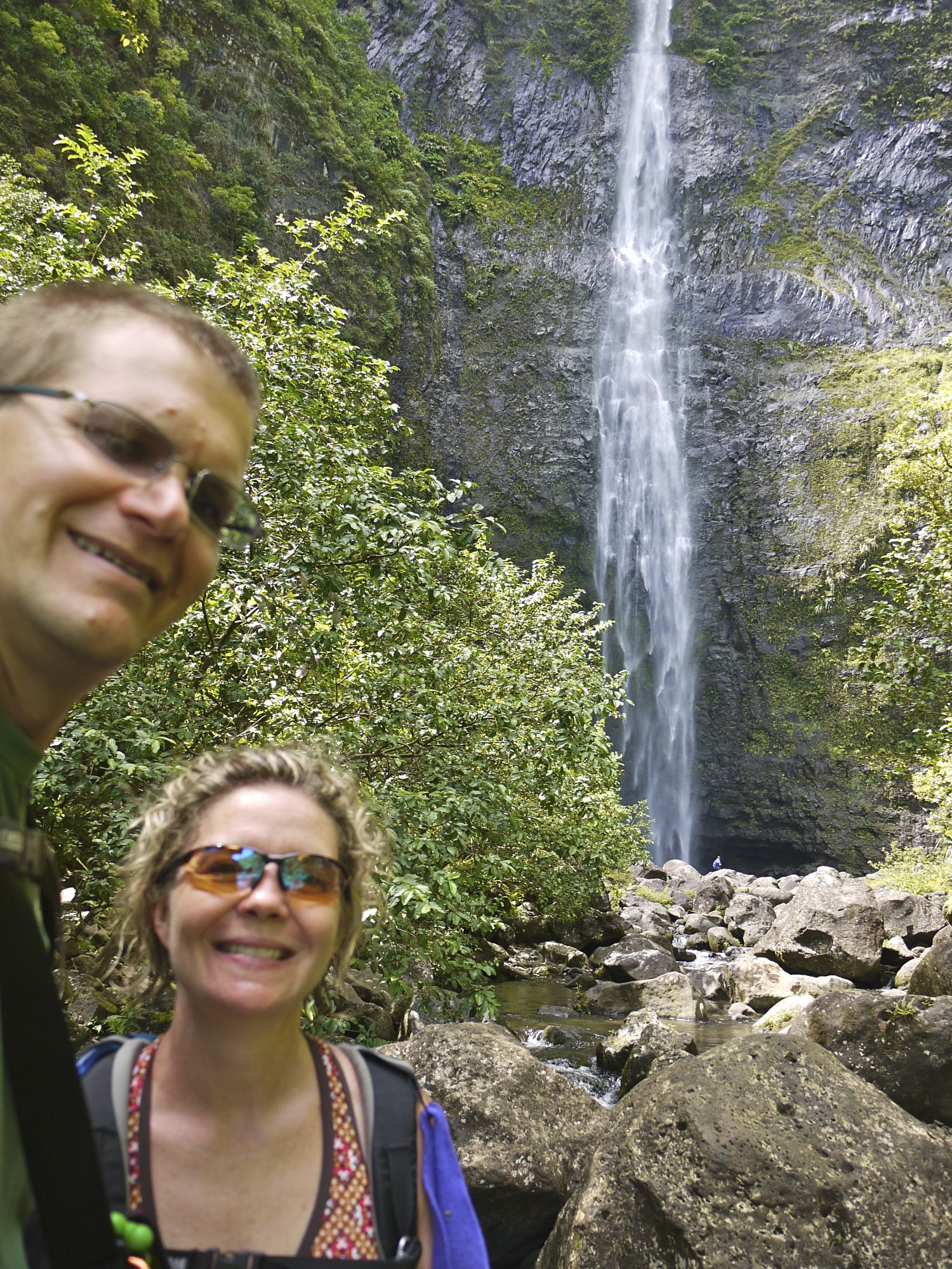 We made it to the river crossing in an hour and 12 minutes. Pretty good time. Then we turned away from the beach and headed into the Hanakapi’ai Valley to the falls.