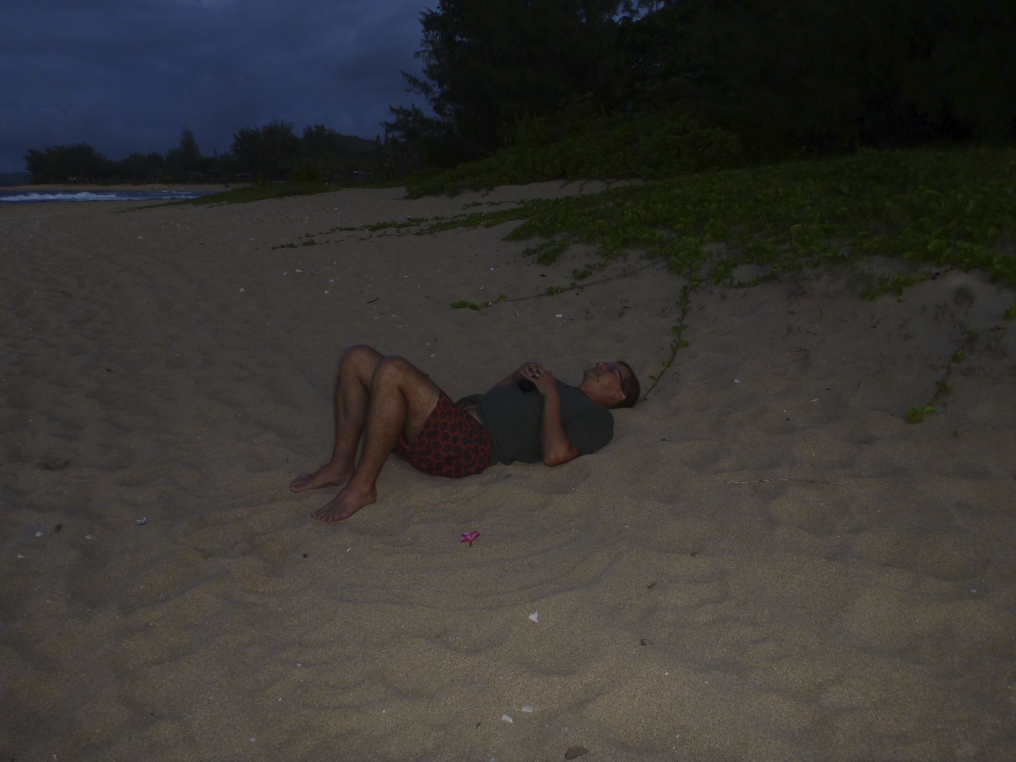 After dinner Mike picked me a plumeria and we strolled to the other sunset beach we like.