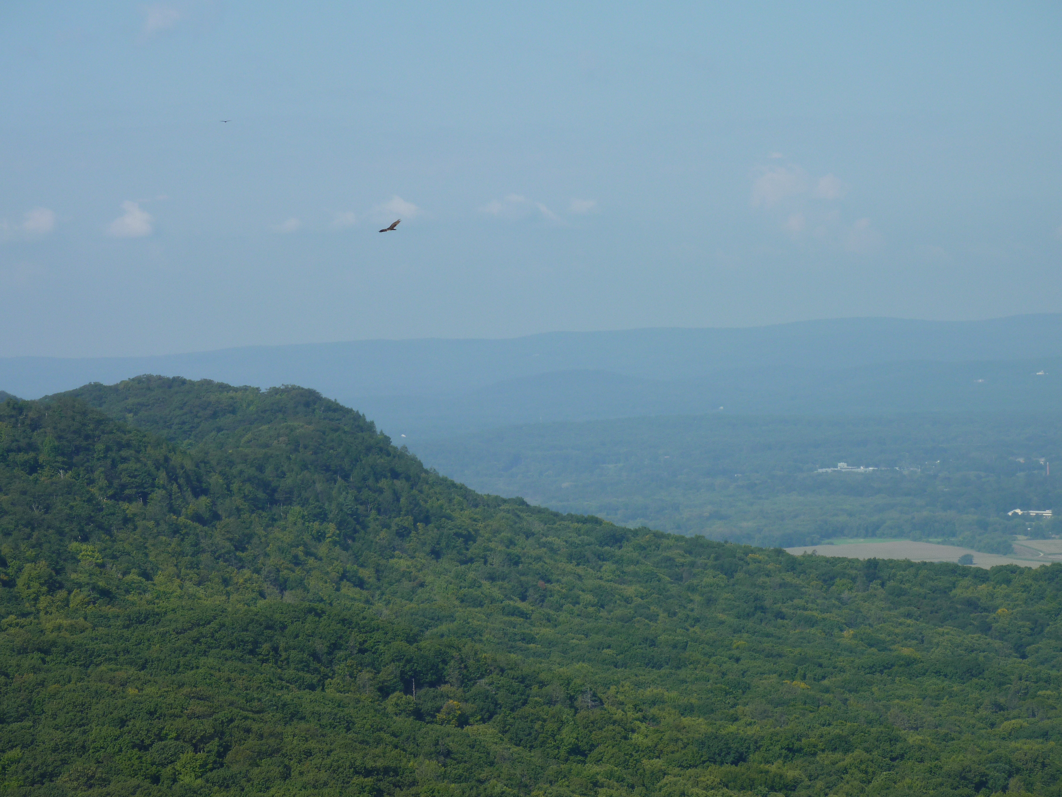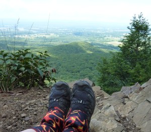 At the .5 mile mark you reach a rocky outcrop, with your first views out. The haze was just sitting out over the valley and there was no breeze to push it away.