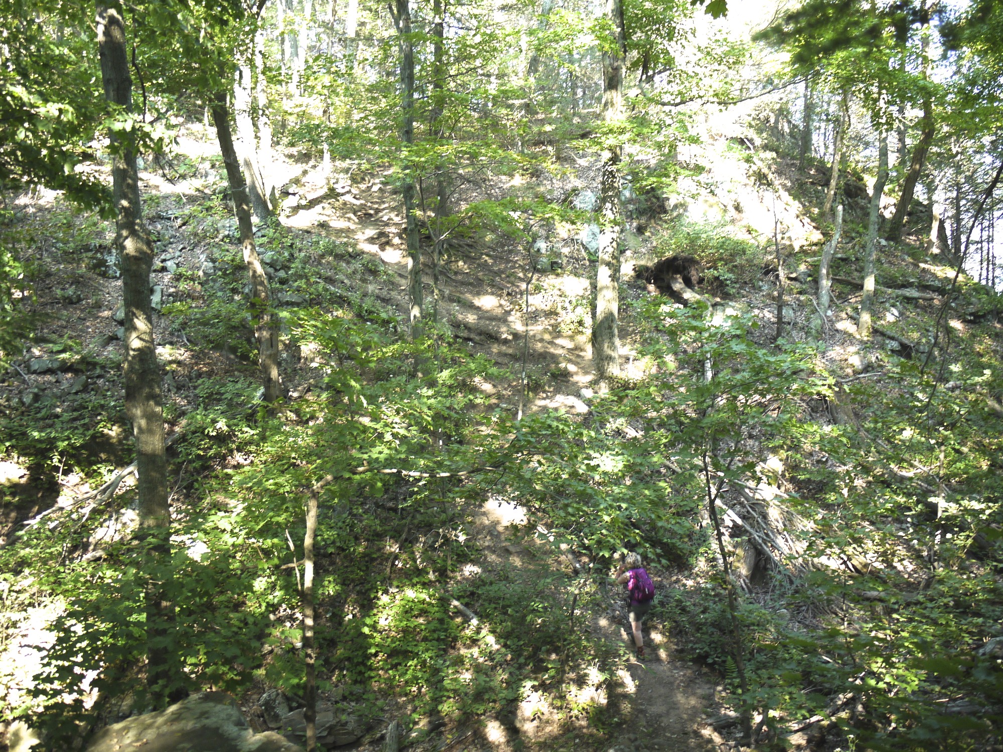 After a brief picture-taking session, we continued on. The trail was a typical Southern New England hike, ups and downs, ups and downs. No nice little switchbacks to make it a little easier on the legs.