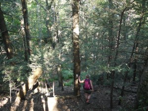We decided to go to 2.5 miles and turn around. It was to hot and humid. I never gained my hiking legs on this hike and the smart thing to do for us was to turn around and head out. We found a little spot to sit down and eat lunch, gather strength to return to the ups and downs. After a 15 minute break, we gave ourselves a pep talk to tackle the ups and downs.