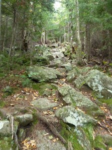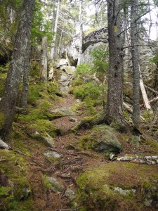 We then joined Inlook trail for .7 miles. We left a fairly easy graded trail for Inlook steepness. To me this was typical White Mountain Hiking in the forest. Rocks and just going up and up.