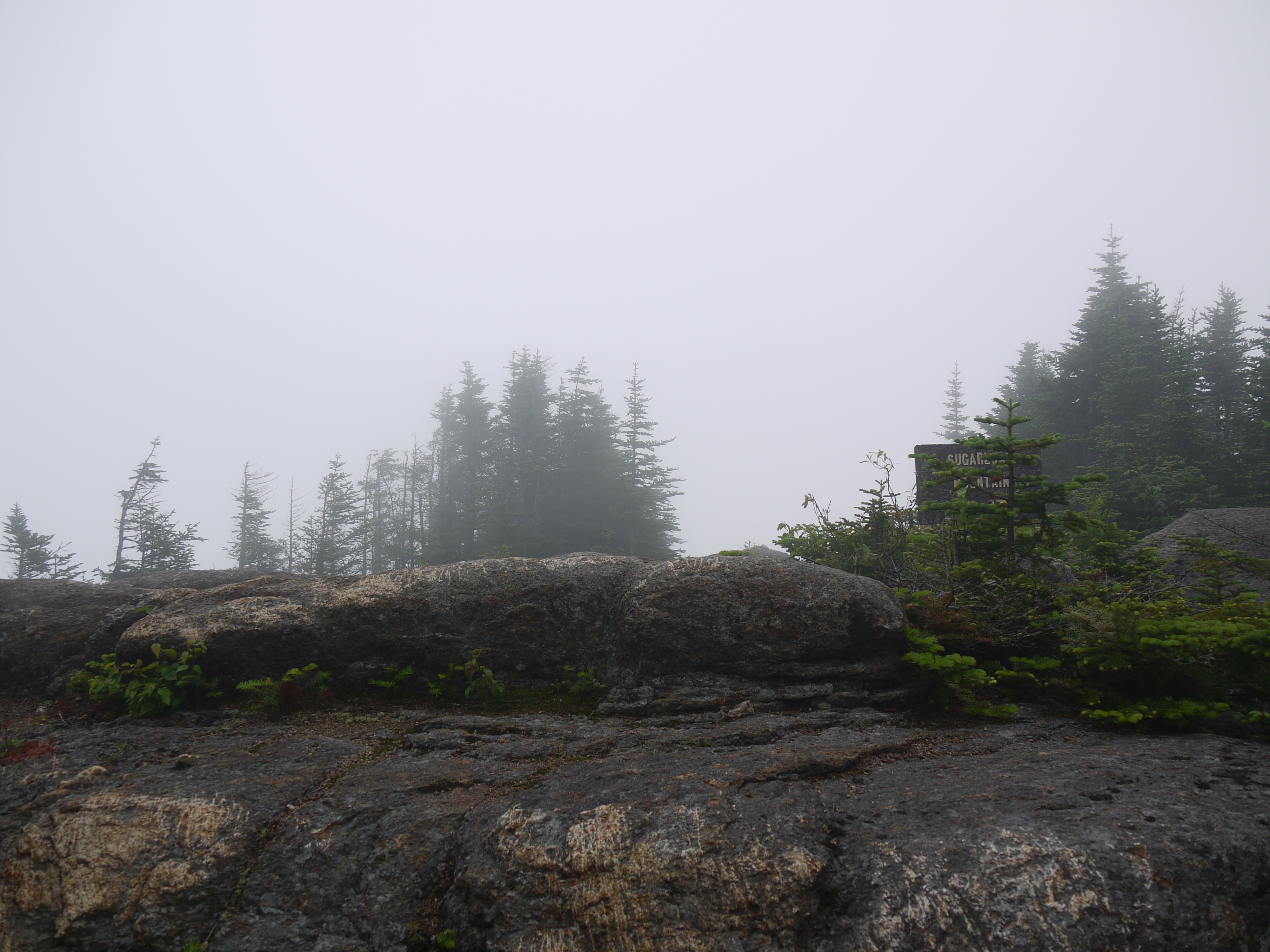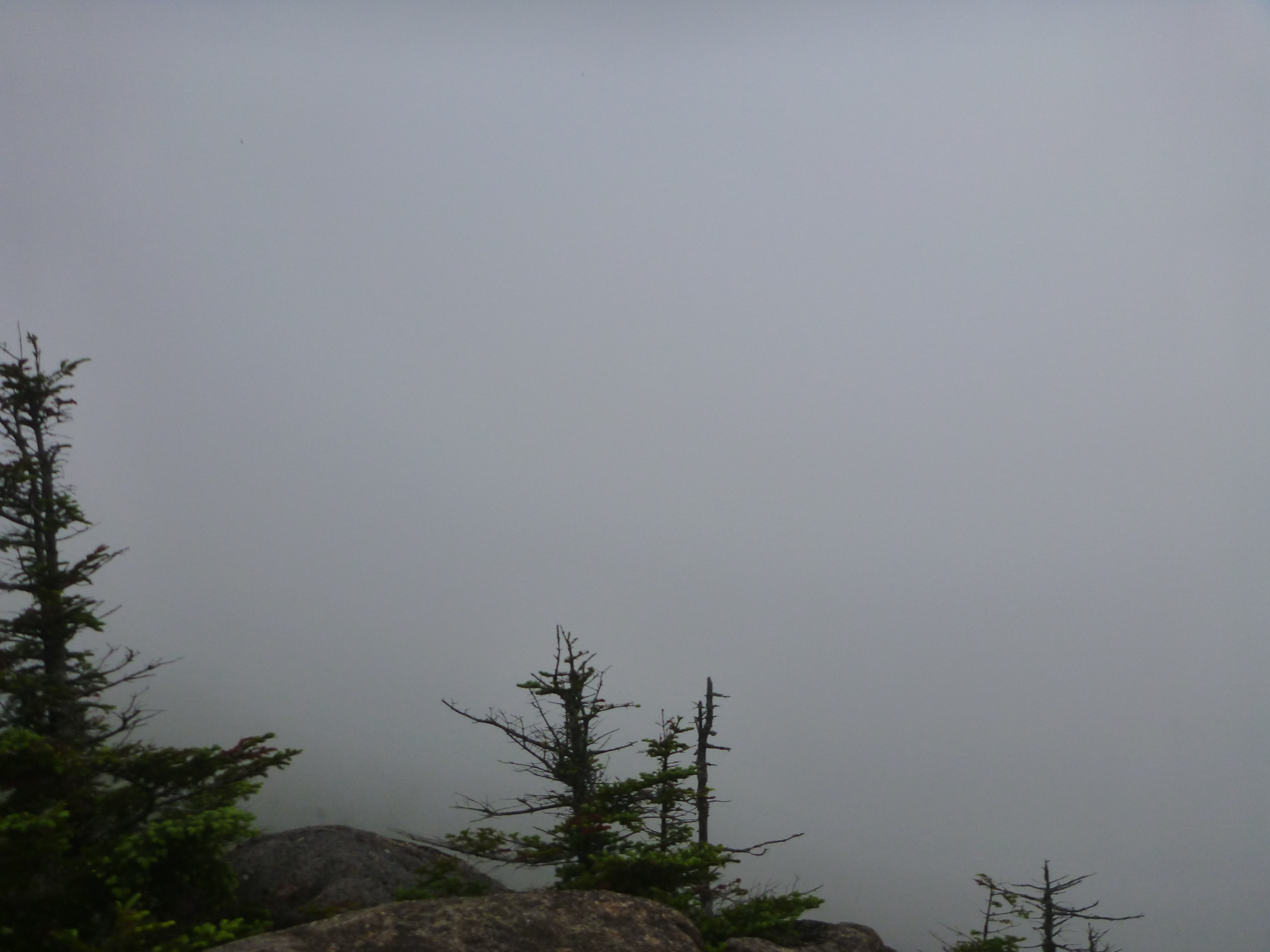 We stood around and ate a few pieces of food quickly. Â The bugs at the summit didn’t take a break and we snapped a few pictures of the fog that surrounded us.
