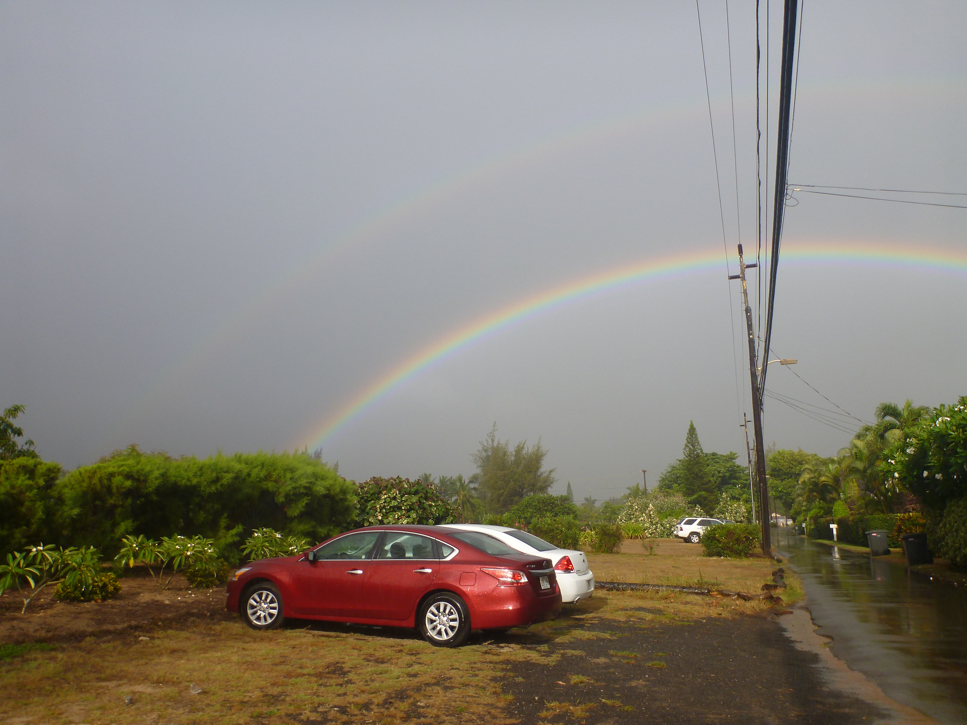Off to Costco for gas. Wait a minute, we have a rainbow. Time for a rainbow break.