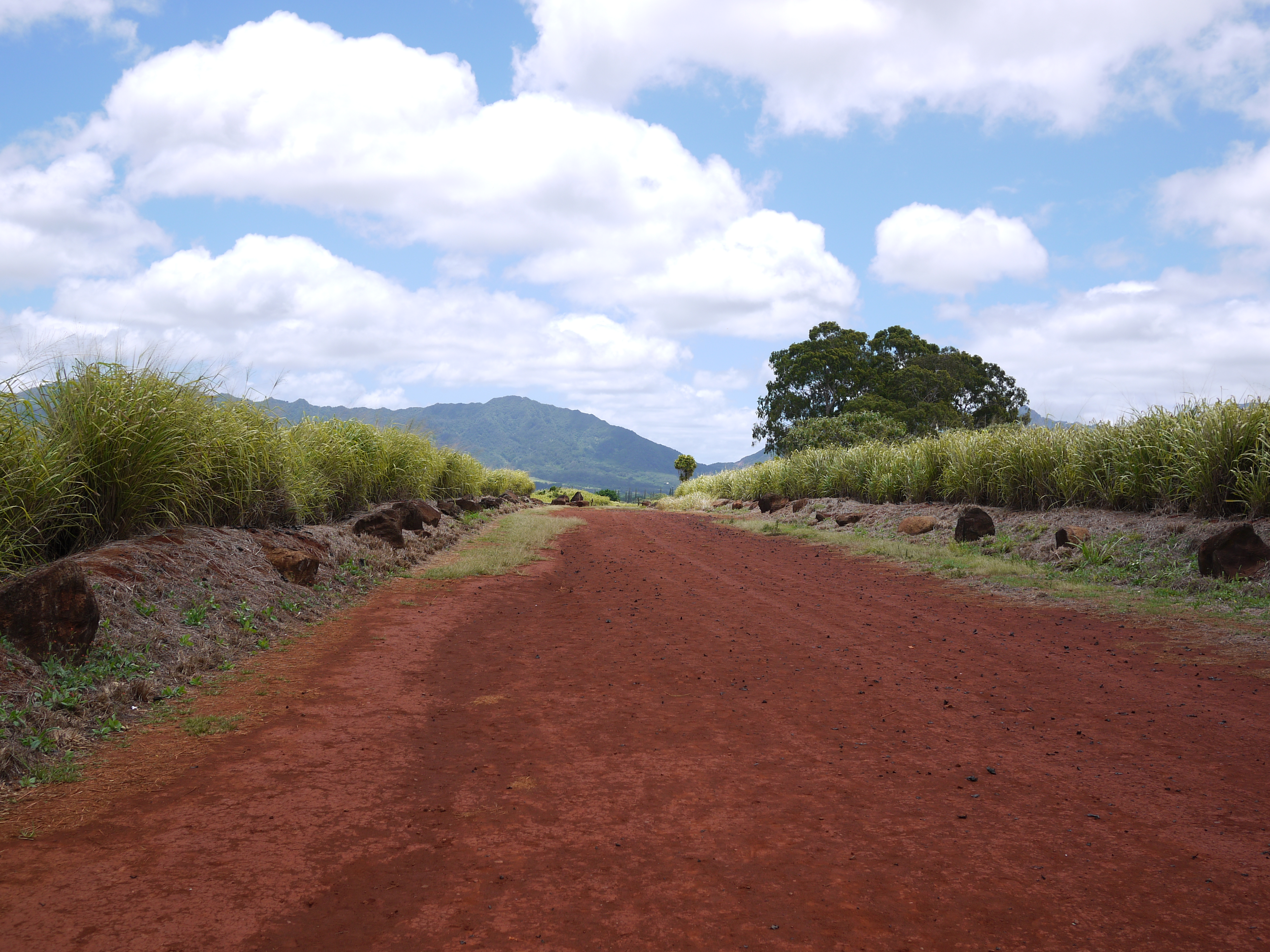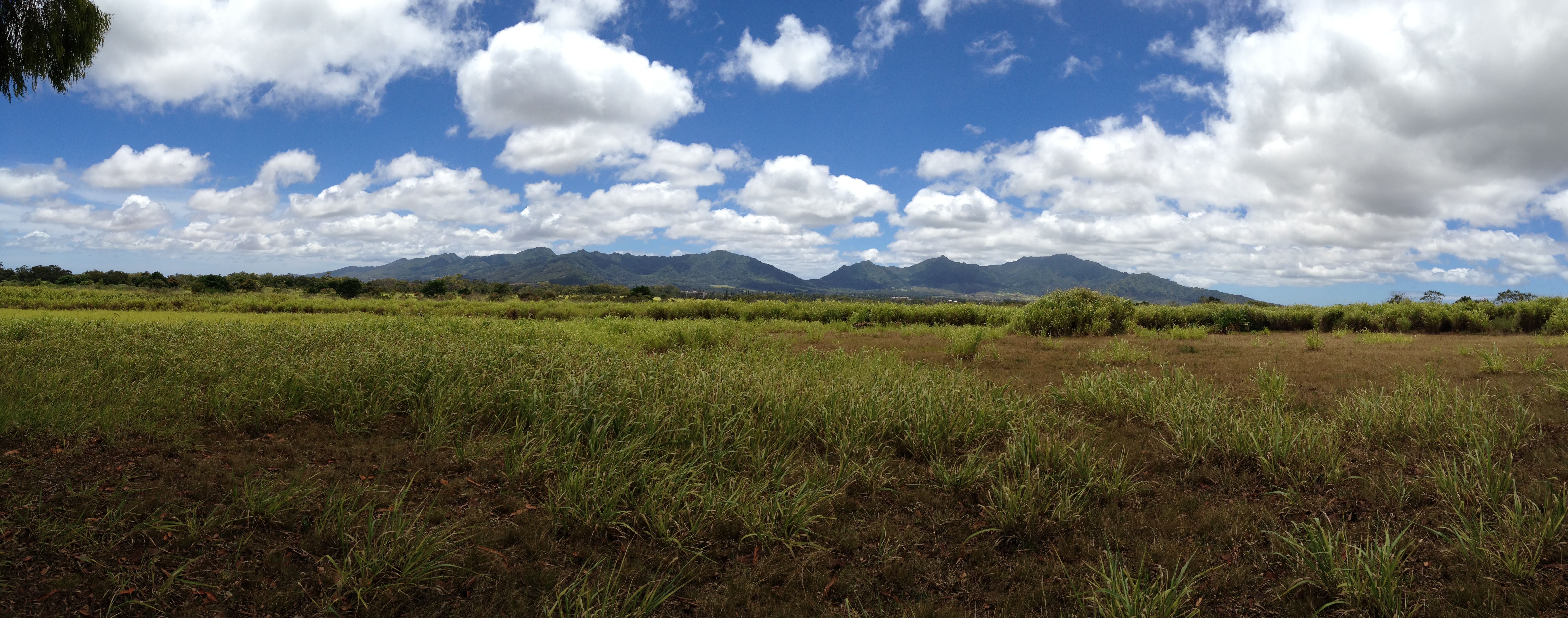 This is located in a sugar cane field with the beautiful mountains as a backdrop.