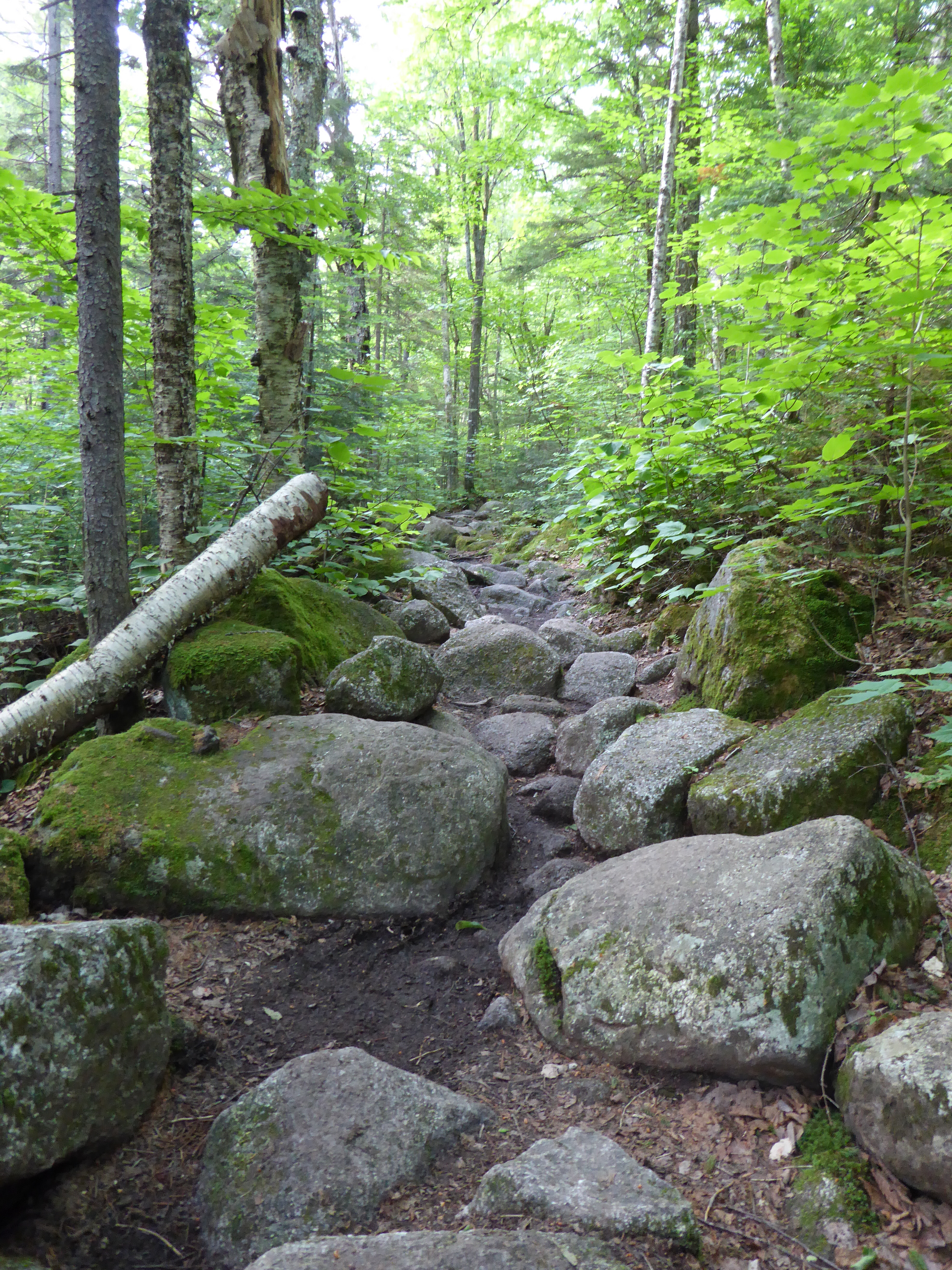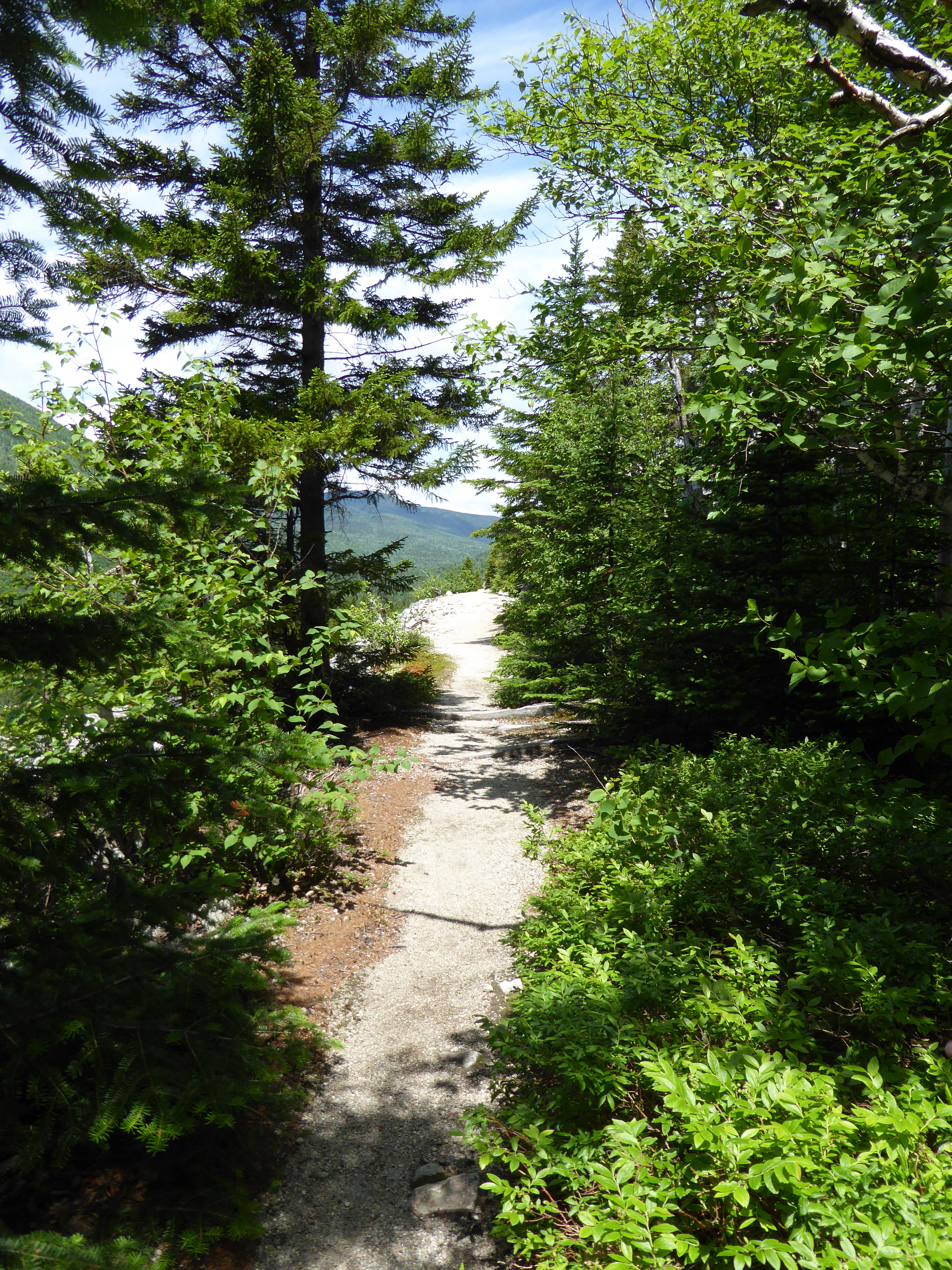 The first 2.5 miles on the Zealand Trail is a comfortable stroll hopping over rocks, avoiding roots, viewing the occasional peaks to the mountains and enjoying the easiness of the trail.