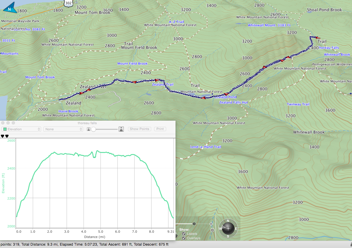 We were out there for 5 hours, 4 hours and 20 minutes of it, active hiking time for a total of 9.4 miles. We loved the Ethan Pond Trail for (anytime I get a piece of the A.T., I get giddy), its remoteness, beauty and solitude. The Thoreau Falls were beautiful and I have a feeling we will return.