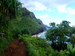 We hit the Kalalau trail at 7 a.m., had permits to go beyond the beach, so that was the plan. The trail was dry, the trail was muddy, the trail was busy but we kept our legs moving along.