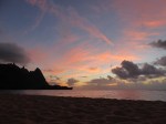 As we laid our towel out for sunset on Tunnels Beach, we noticed a rainbow arch in the sky.