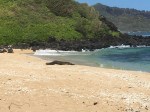 At the end of the trail, we turned left and went that way. As we walked down a little way, a woman sitting down asked if we knew about monk seals and how far to stay away from them. I let her know one of my dream retirement volunteer jobs is to be that person putting the ropes around the beached monk seals. Of course hearing there was a monk seal, my pace picked up.