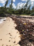 Two families were there, jumping in to the hole. We beached walked for a bit and then got into the water to swim over the hole. I was dismayed at all the garbage that littered the beach. Mike picked up some to see where it originated, seemed to be from Haiti.