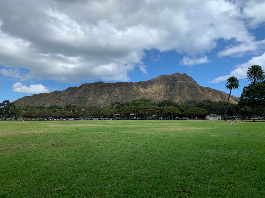 Upon our return home, it was nap time, per usual Sunday routine. However the homeowners of the rental were home and loud so napping at the house was not possible, might as well go nap in the park and hang out. We gathered our things and found a cozy spot in Kapiolani Park to read, watch locals play sports and snooze. Perfect place to laze about.