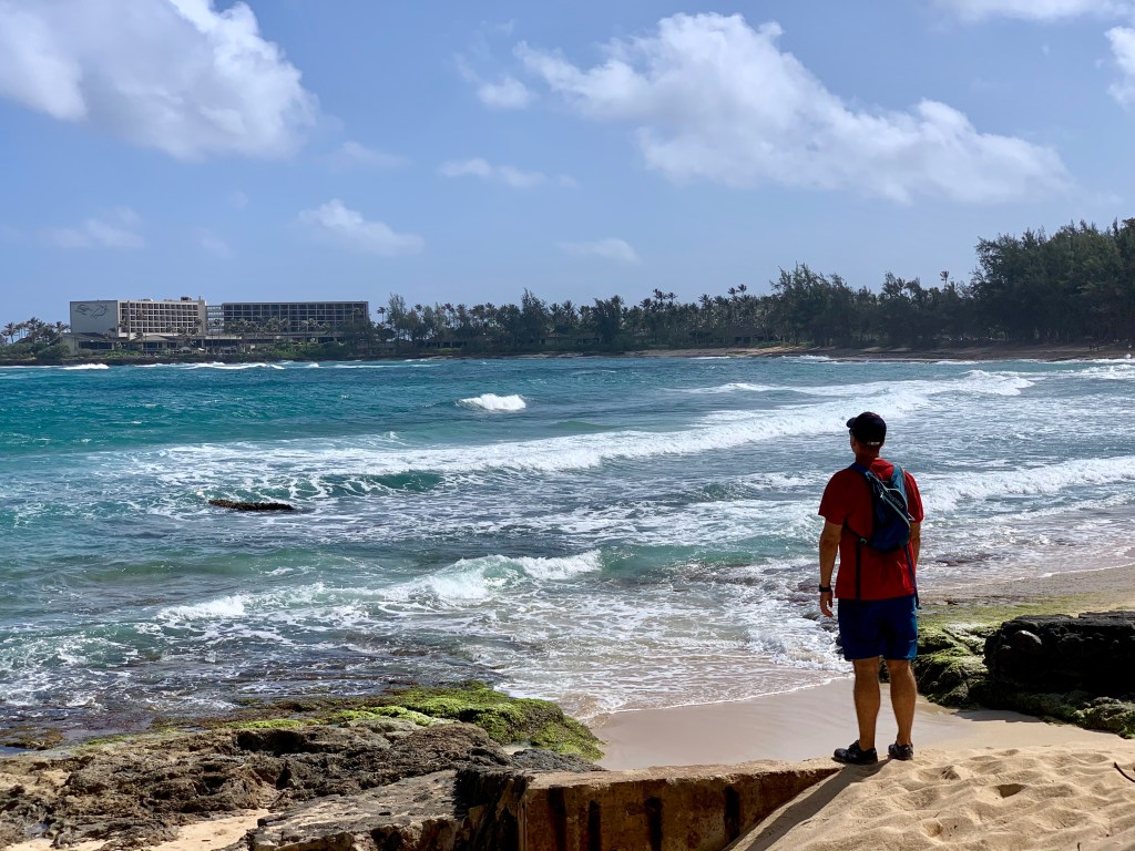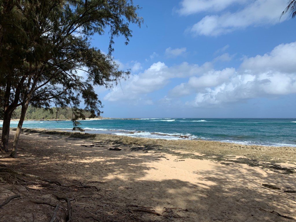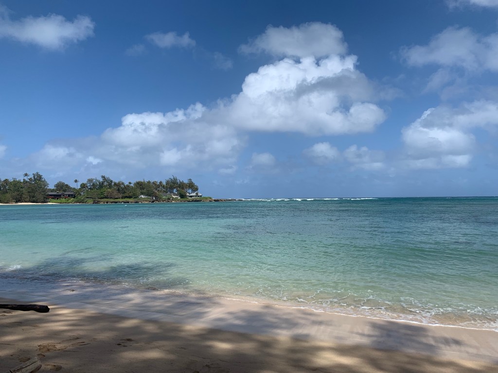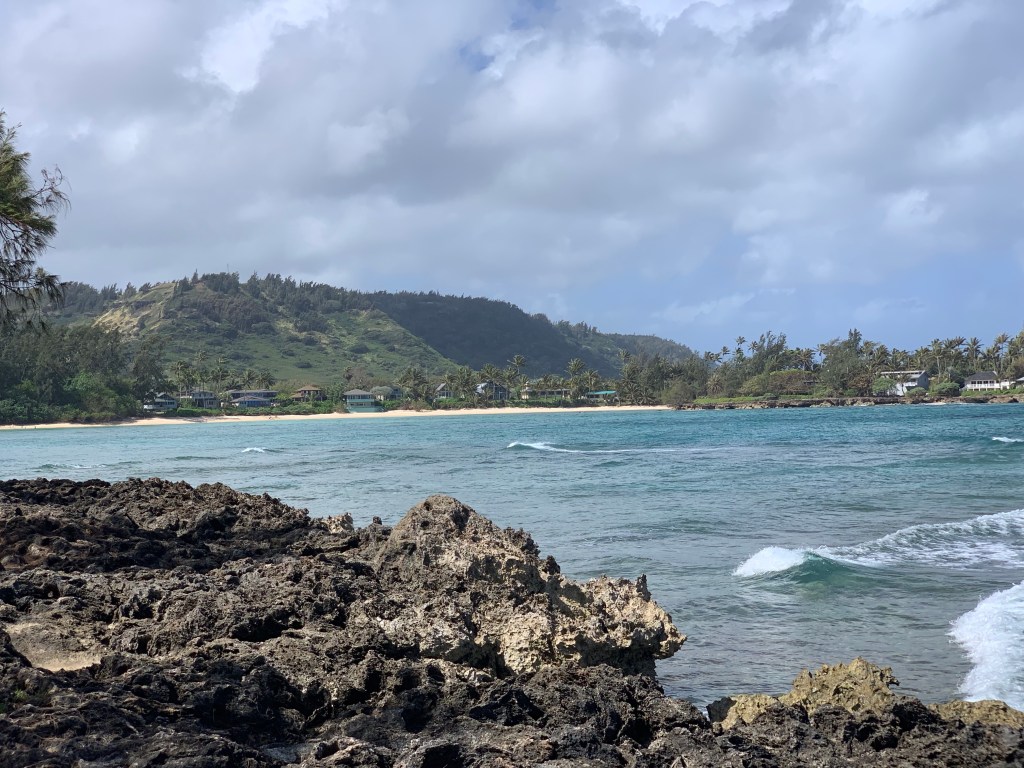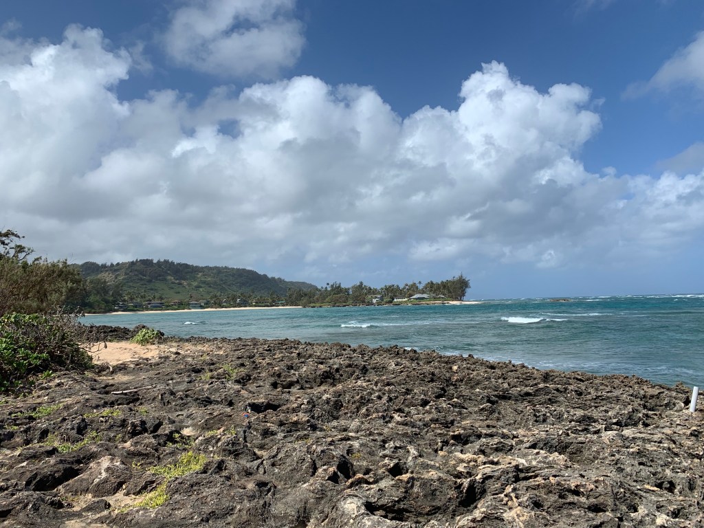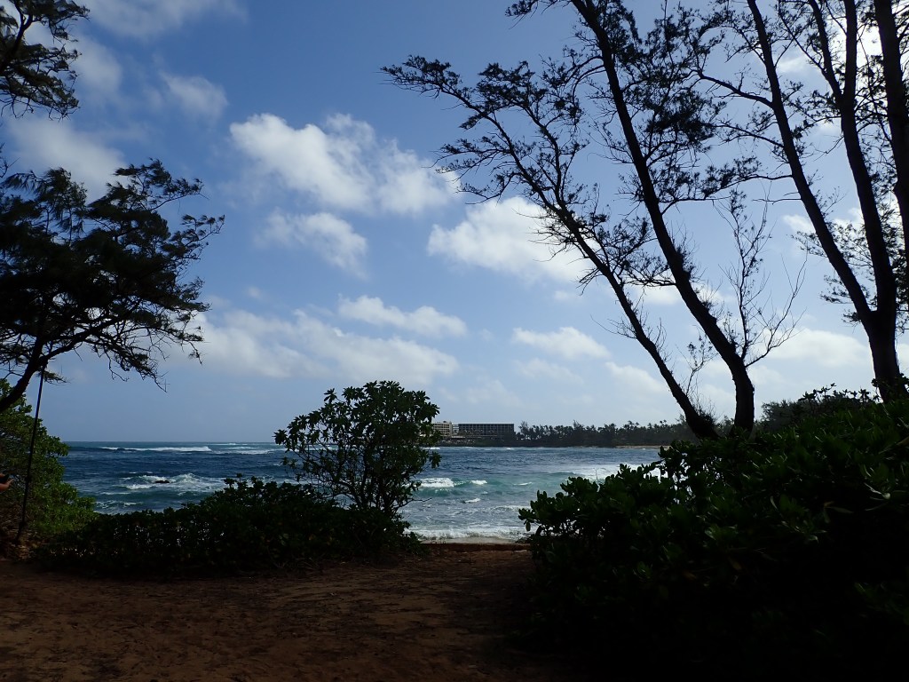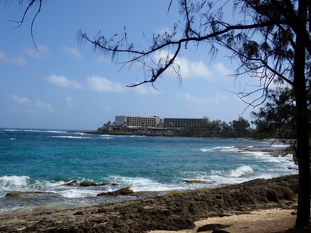 We compromised, I got my mini hike in and Mike got his beach walk in. We went to Kawela Bay on the North Shore to hike the trails around Turtle Bay Resort then sit in the beach at the bay. This was a repeat visit for us, but one we enjoy. We know we could get away from the crowds and well those type of people that annoyed us yesterday. We did get in the water, but not for long, it was chilly water.