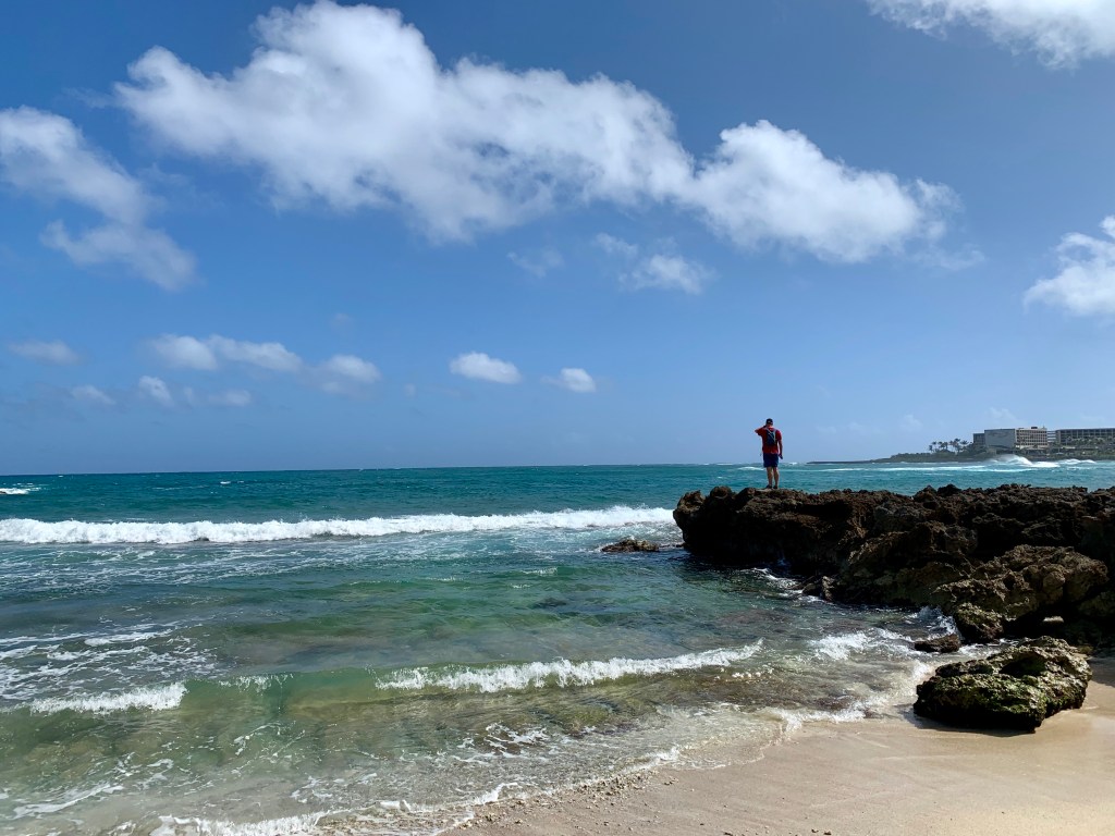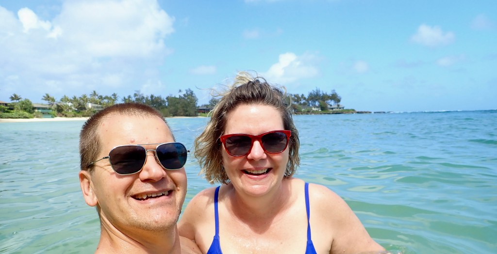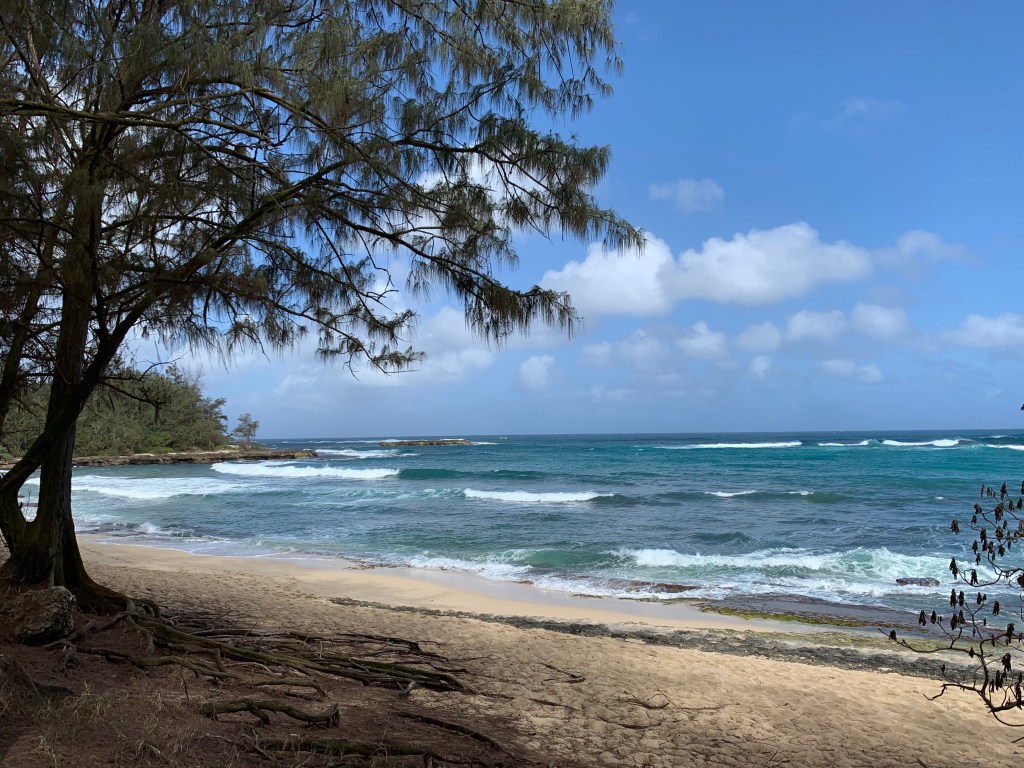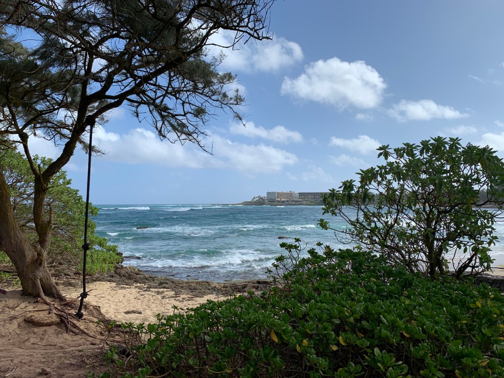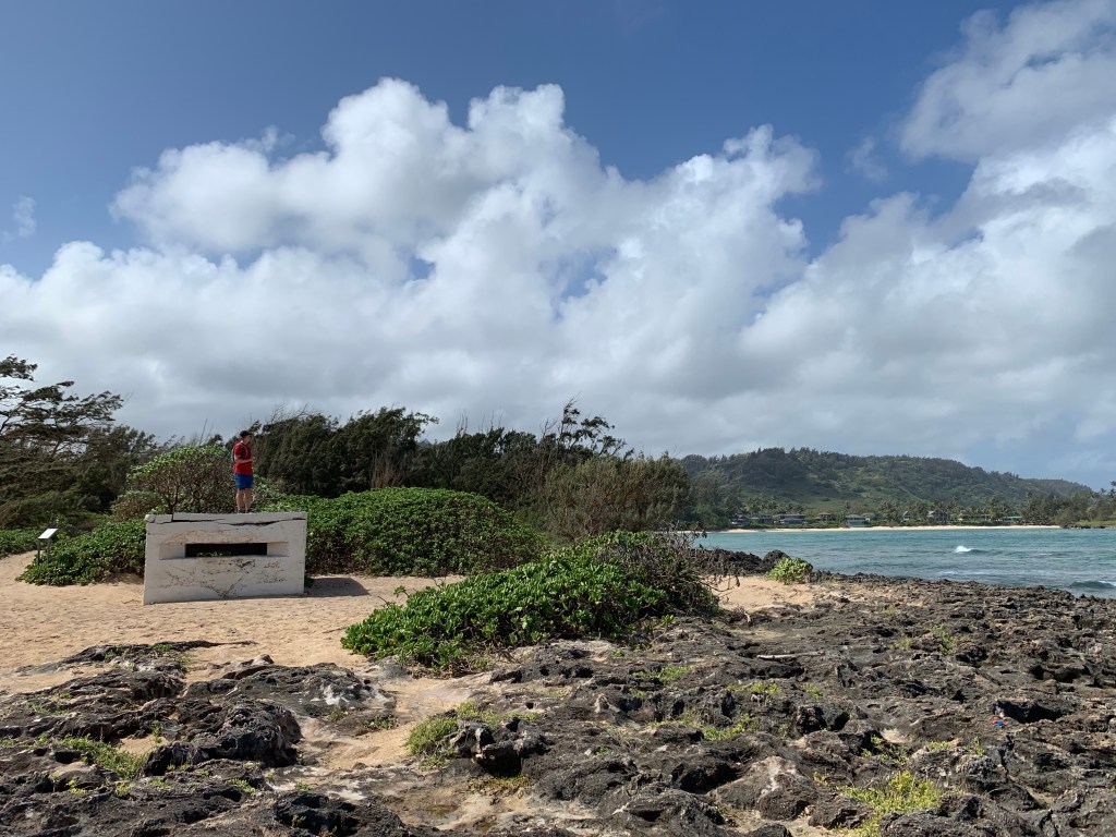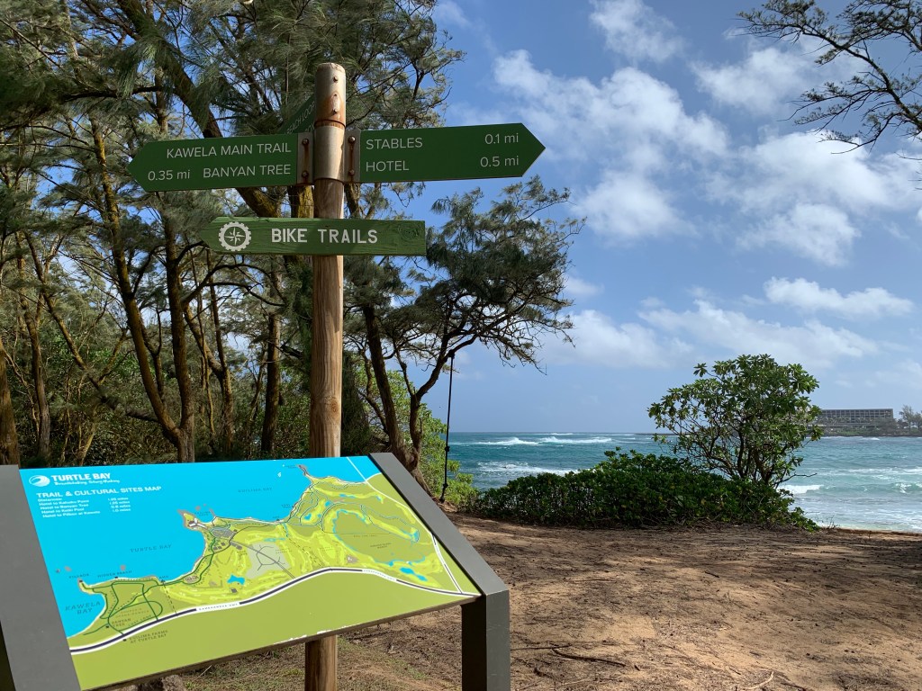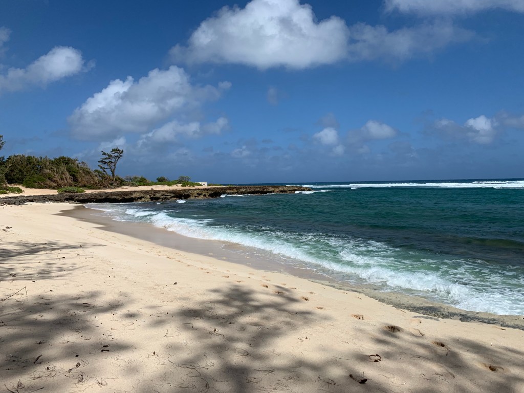 We compromised, I got my mini hike in and Mike got his beach walk in. We went to Kawela Bay on the North Shore to hike the trails around Turtle Bay Resort then sit in the beach at the bay. This was a repeat visit for us, but one we enjoy. We know we could get away from the crowds and well those type of people that annoyed us yesterday. We did get in the water, but not for long, it was chilly water.