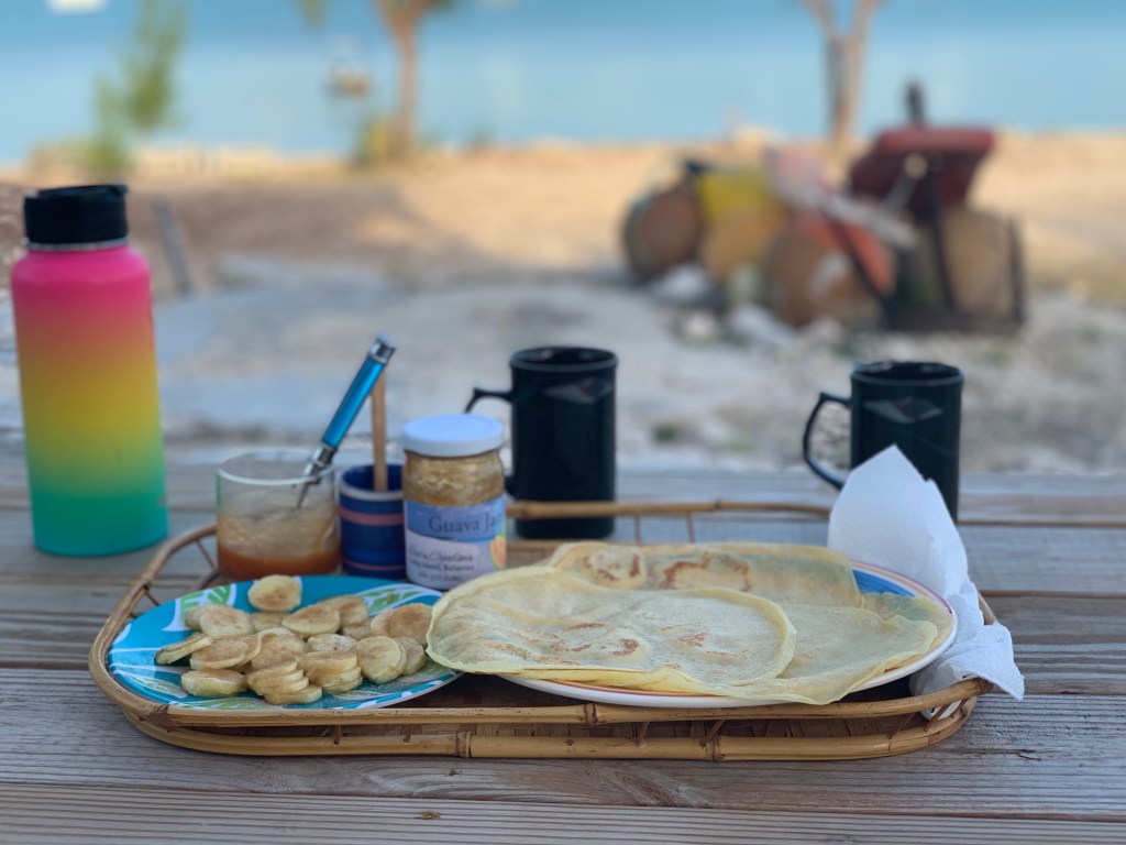 Followed by a lovely breakfast of crepes filled with bananas overlooking the water.