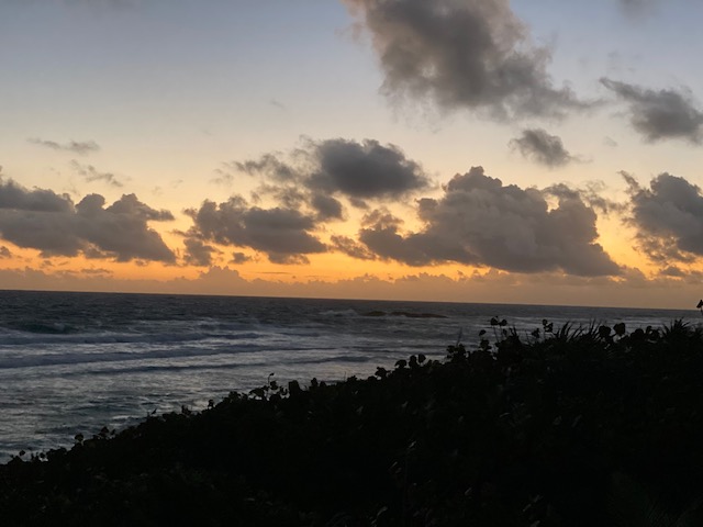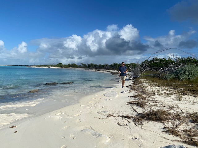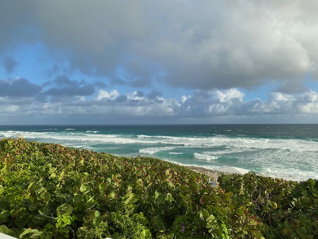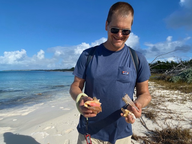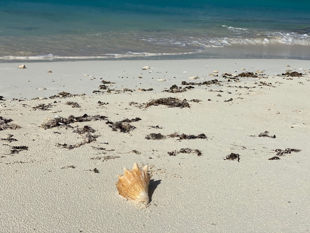 After our 3+ mile walk we went to Max’s for lunch, conch burger with peas and rice and grouper fingers with plantains, with a conch salad to go.