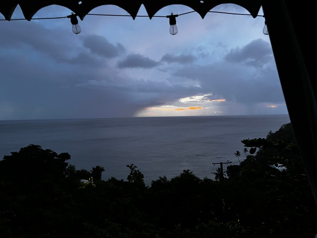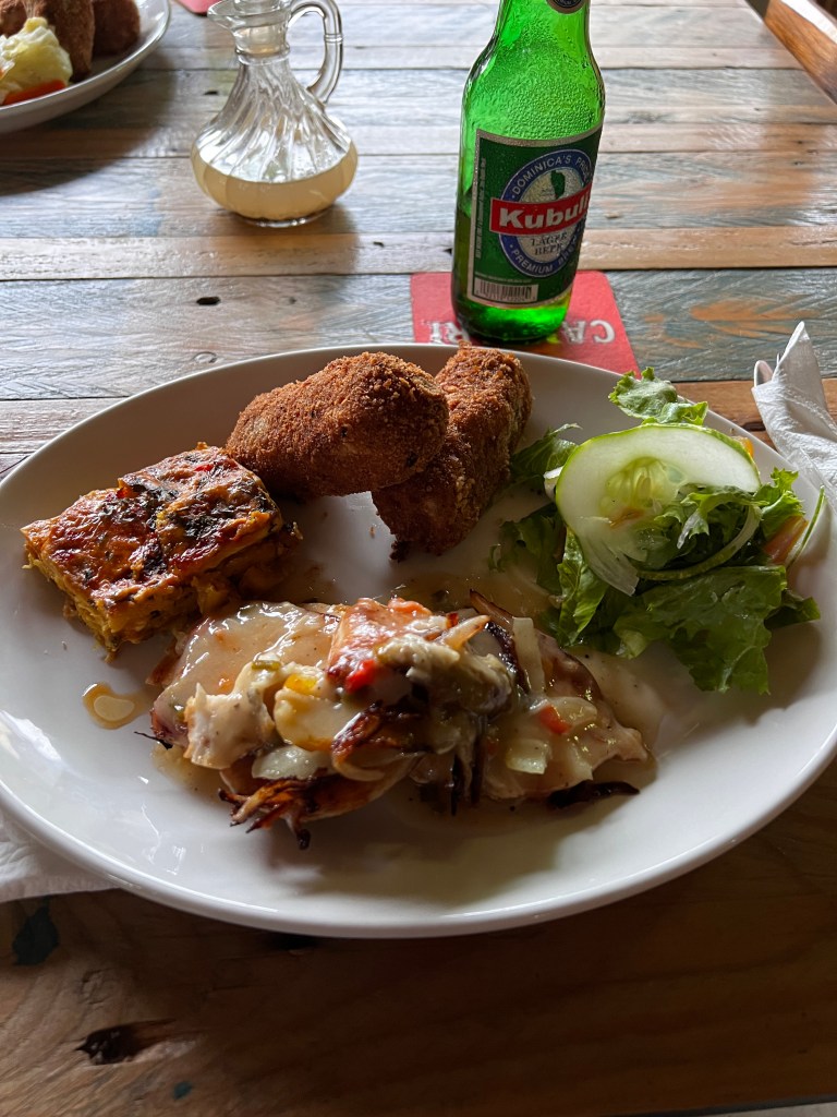 We went to Soursop Bar and grill and it was the best meal I’ve had so far. I had marlin with sweet potatoes croquettes, a breadfruit dish (that I could eat all the time) with a side salad. Mike had the chicken, creamy breadfruit, steamed veggies and the croquettes. This is a repeat place to eat and only 9 minutes from the cottage.