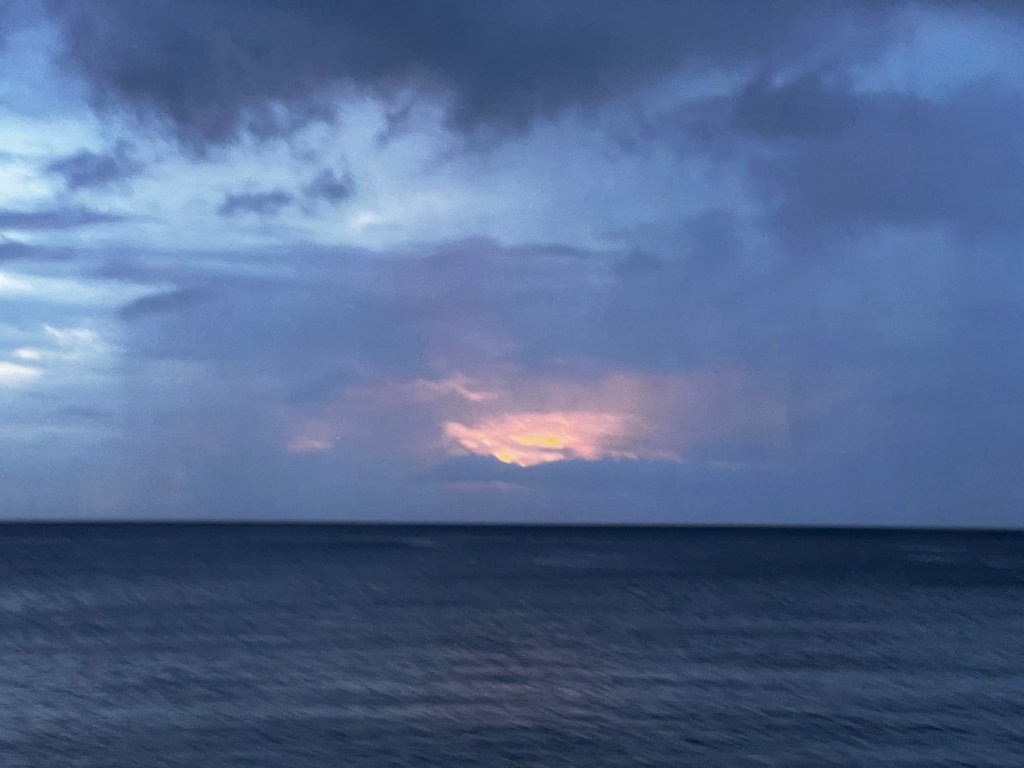 On the way home our first colorful sunset appeared, in between rain showers. Nice way to end this day of just this and that.