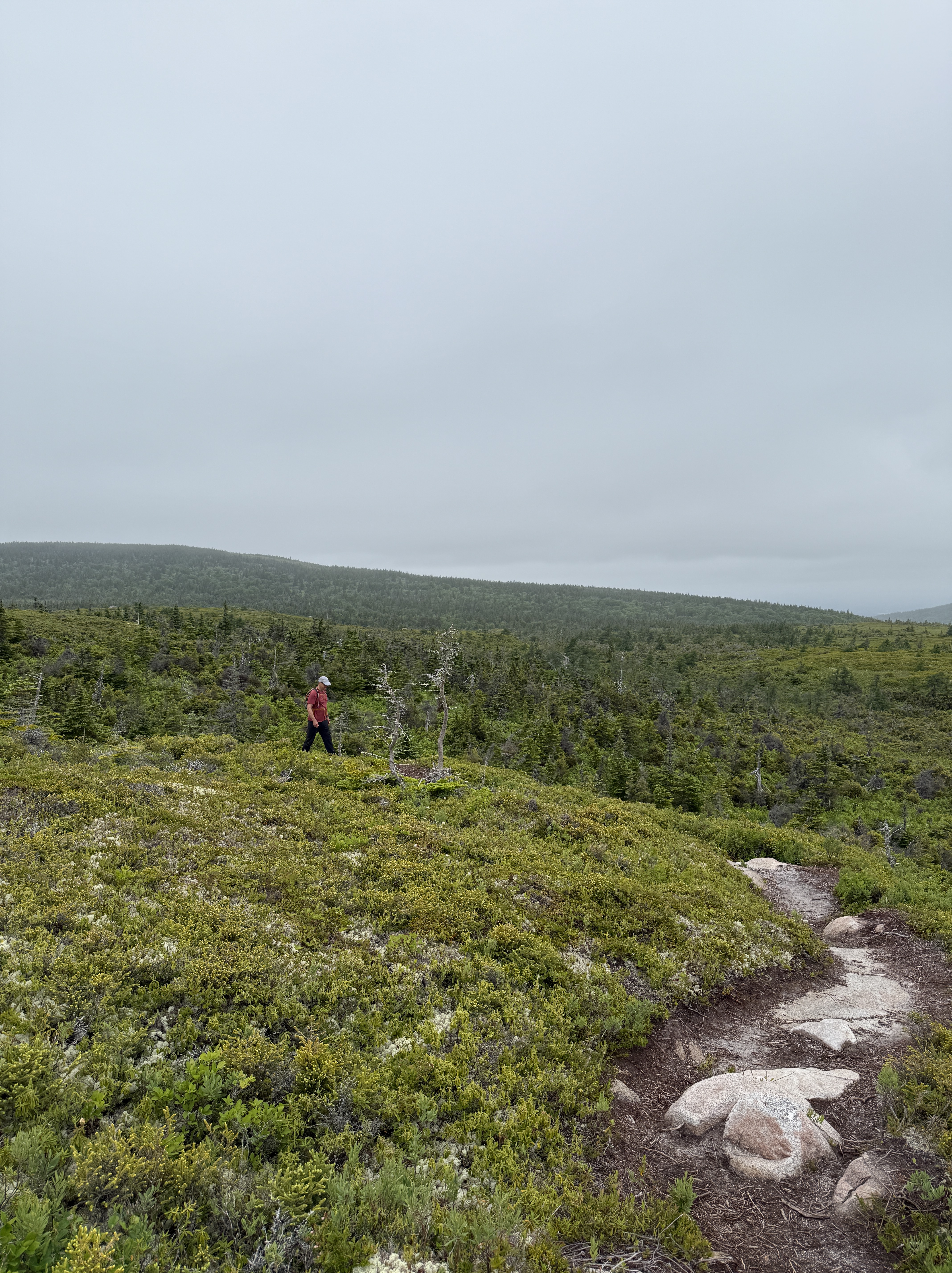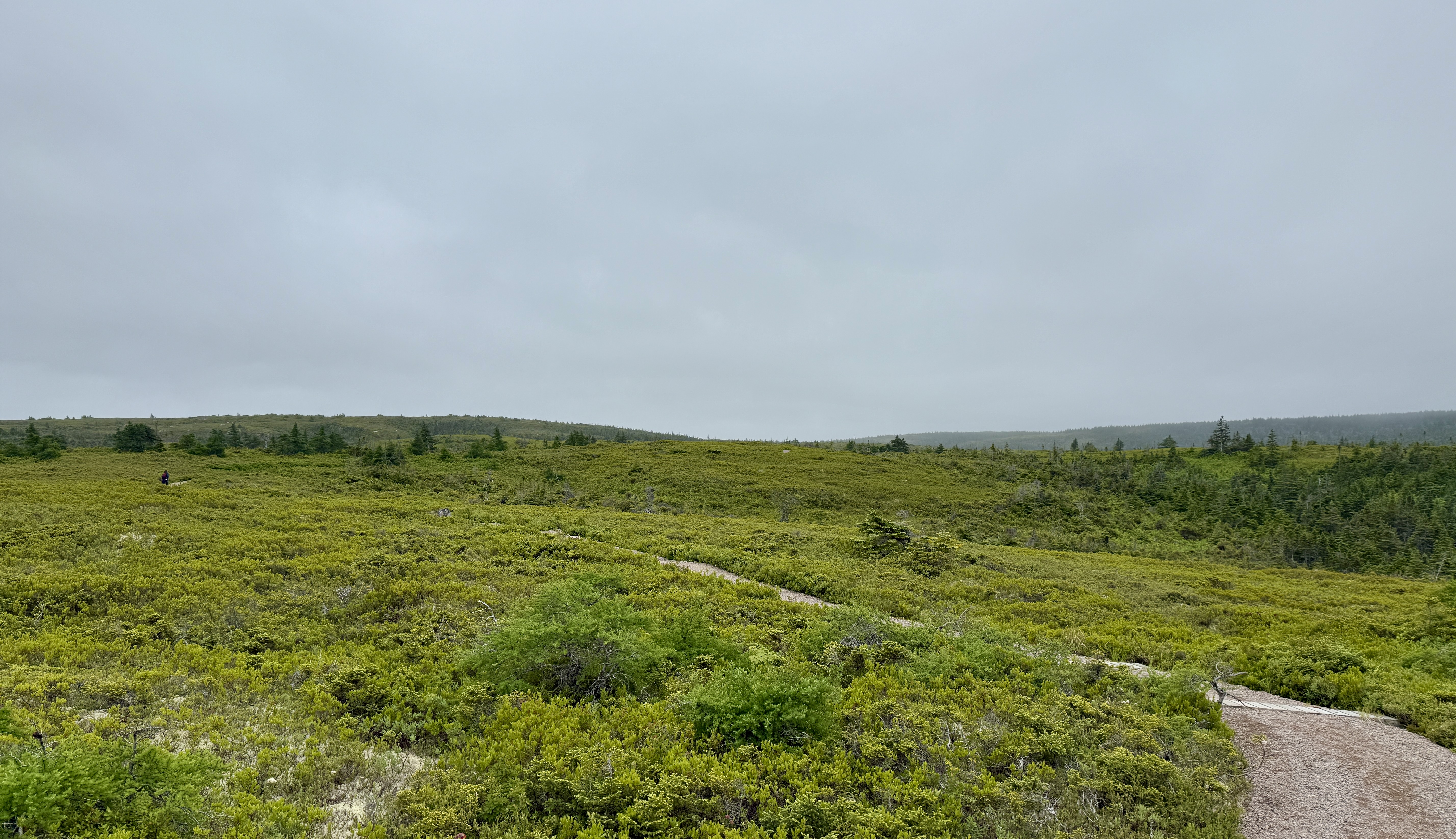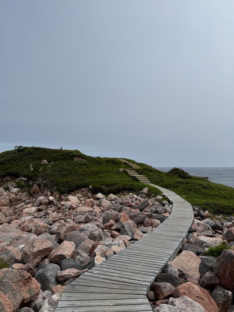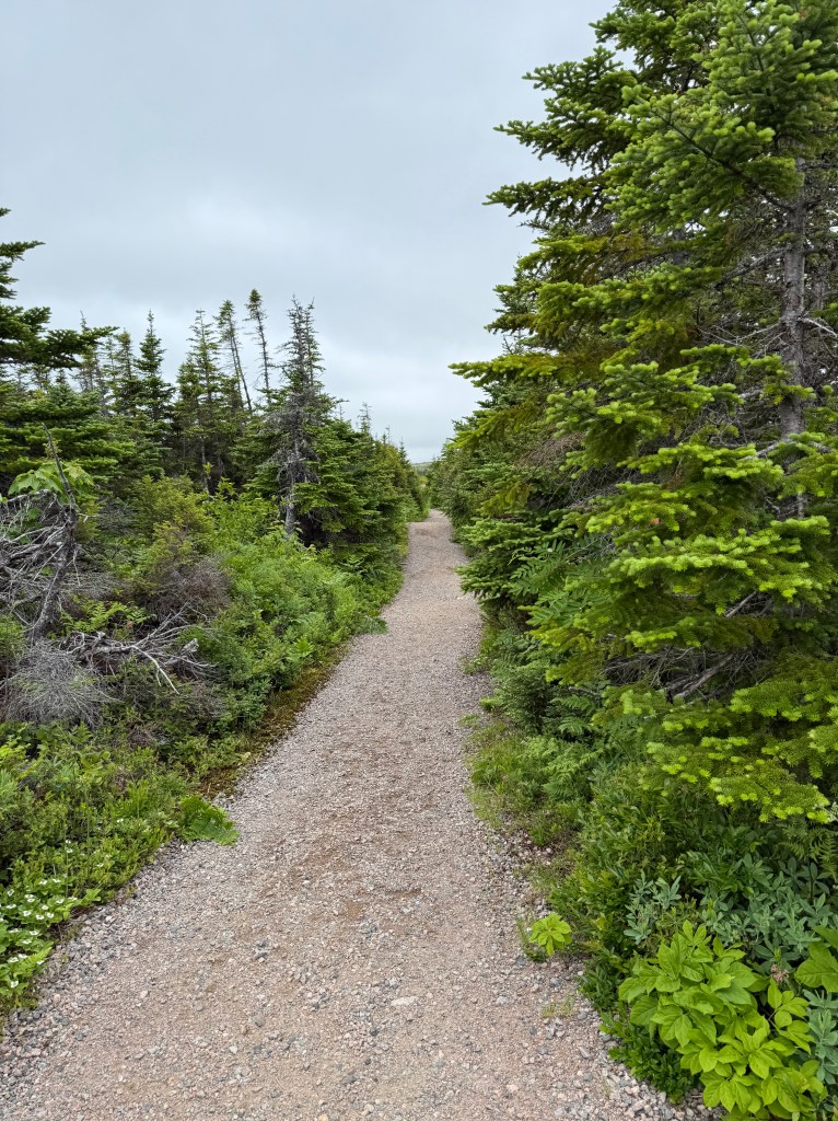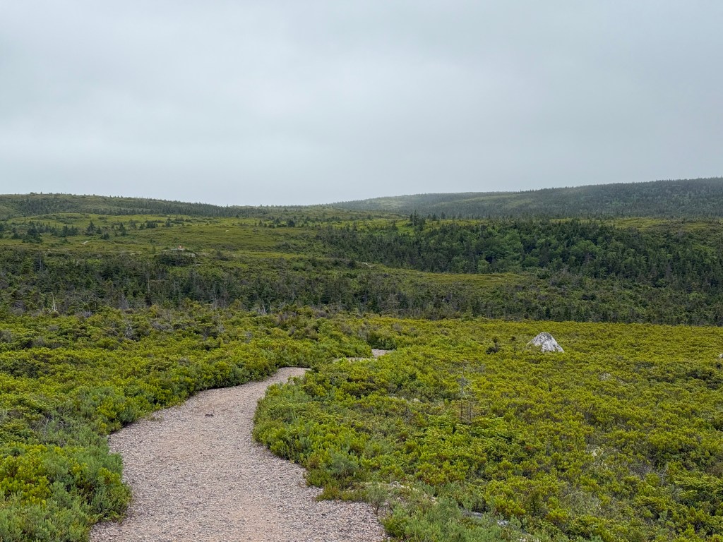 Up next was hike to Mica Hill. We hiked 5.1 miles in 2:20. The hike is located in the Cape Breton Highlands National Park. We walked through a coniferous forest to arrive at a highlands plateau. Due to heavy mist we didn’t see out to the ocean, but still it was a beautiful walk.