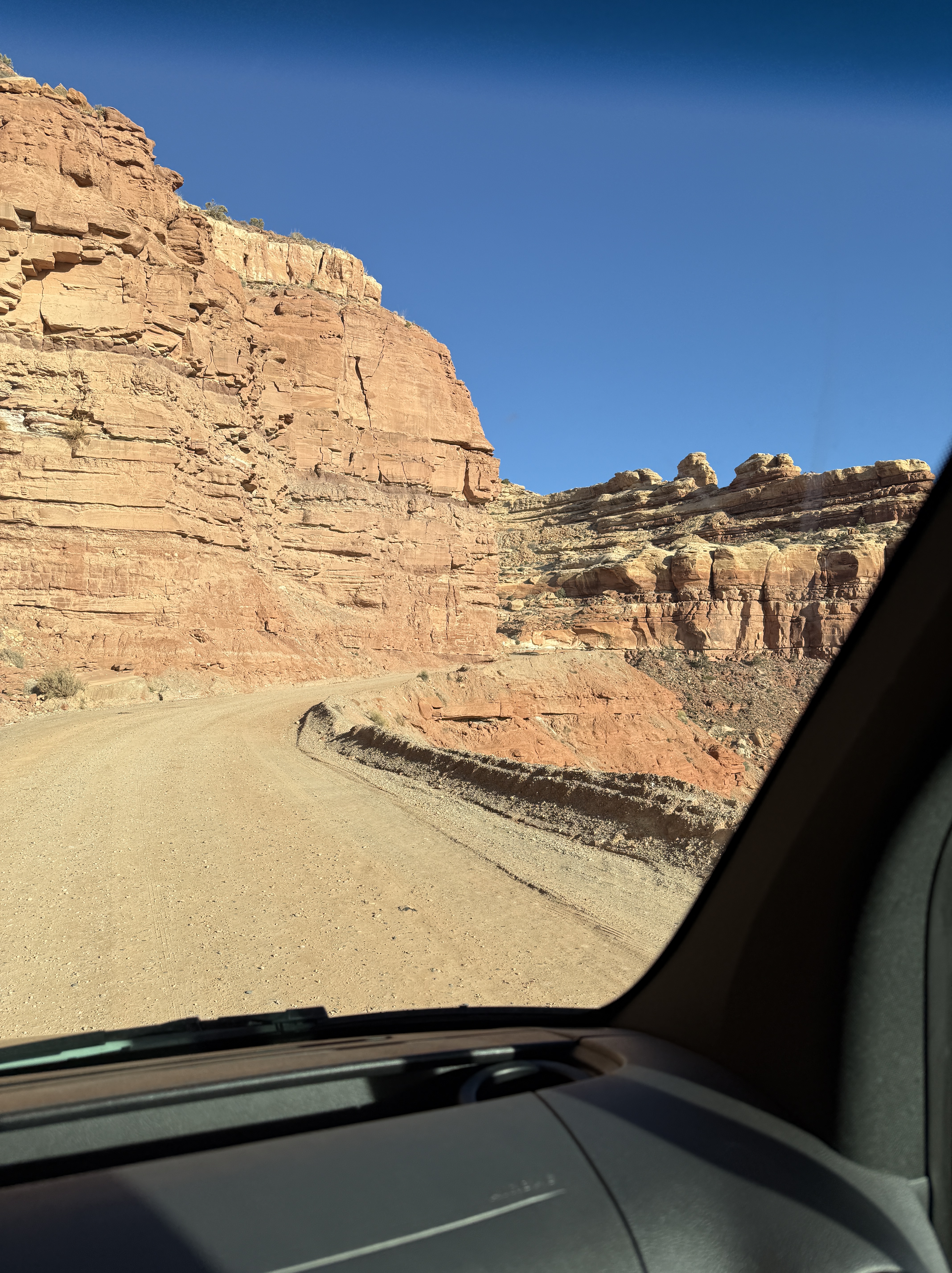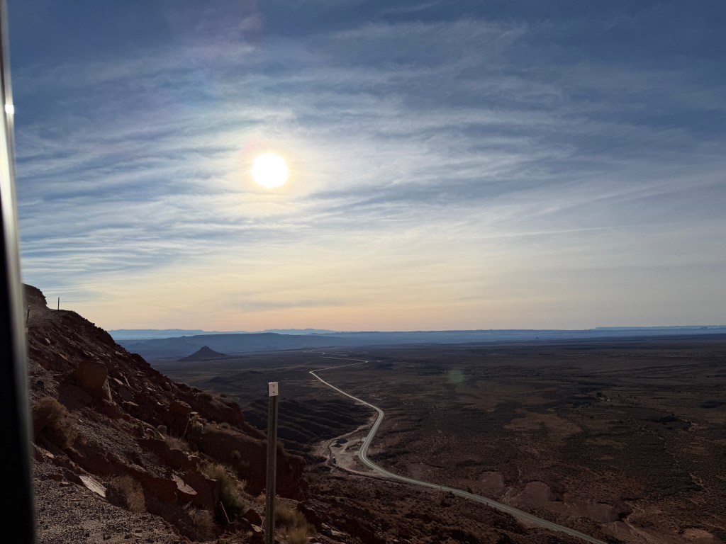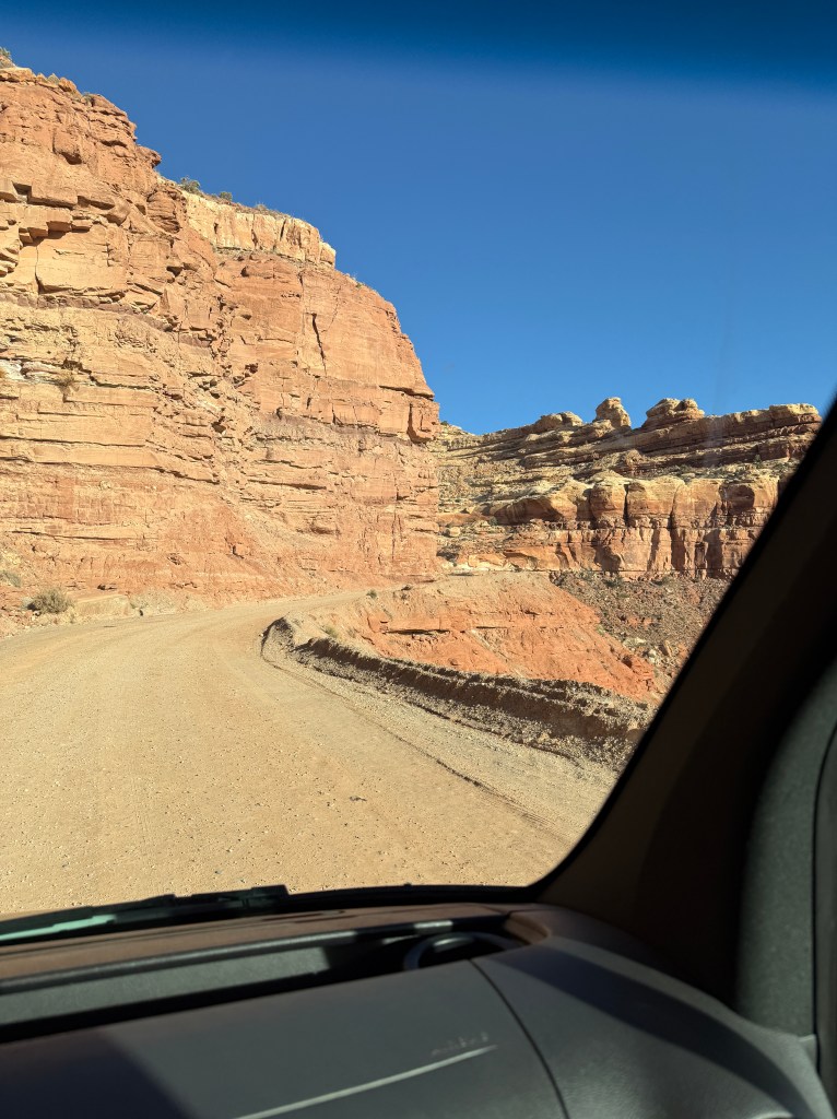 As we departed the area, Mike wanted to drive the Moki Dugway. I wasn’t thrilled about it. It is a narrow 3 mile unpaved road that winds up and down.