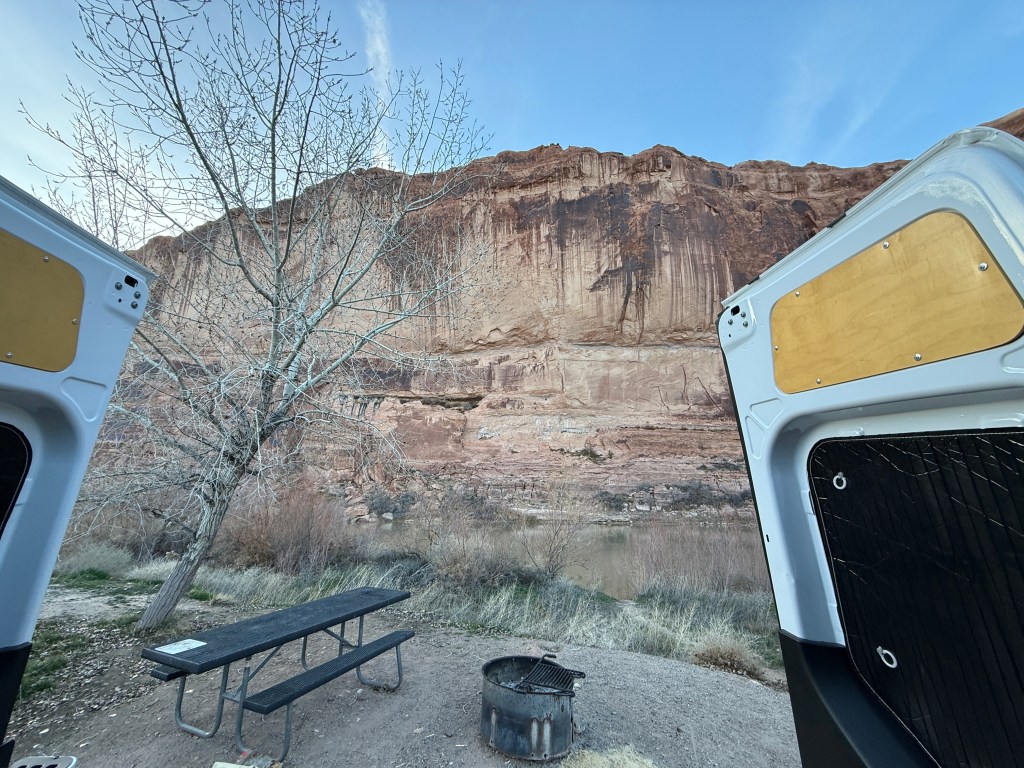 We left Gooseneck and headed to a camping spot outside of Arches National Park, Goose Island right on the Colorado River.