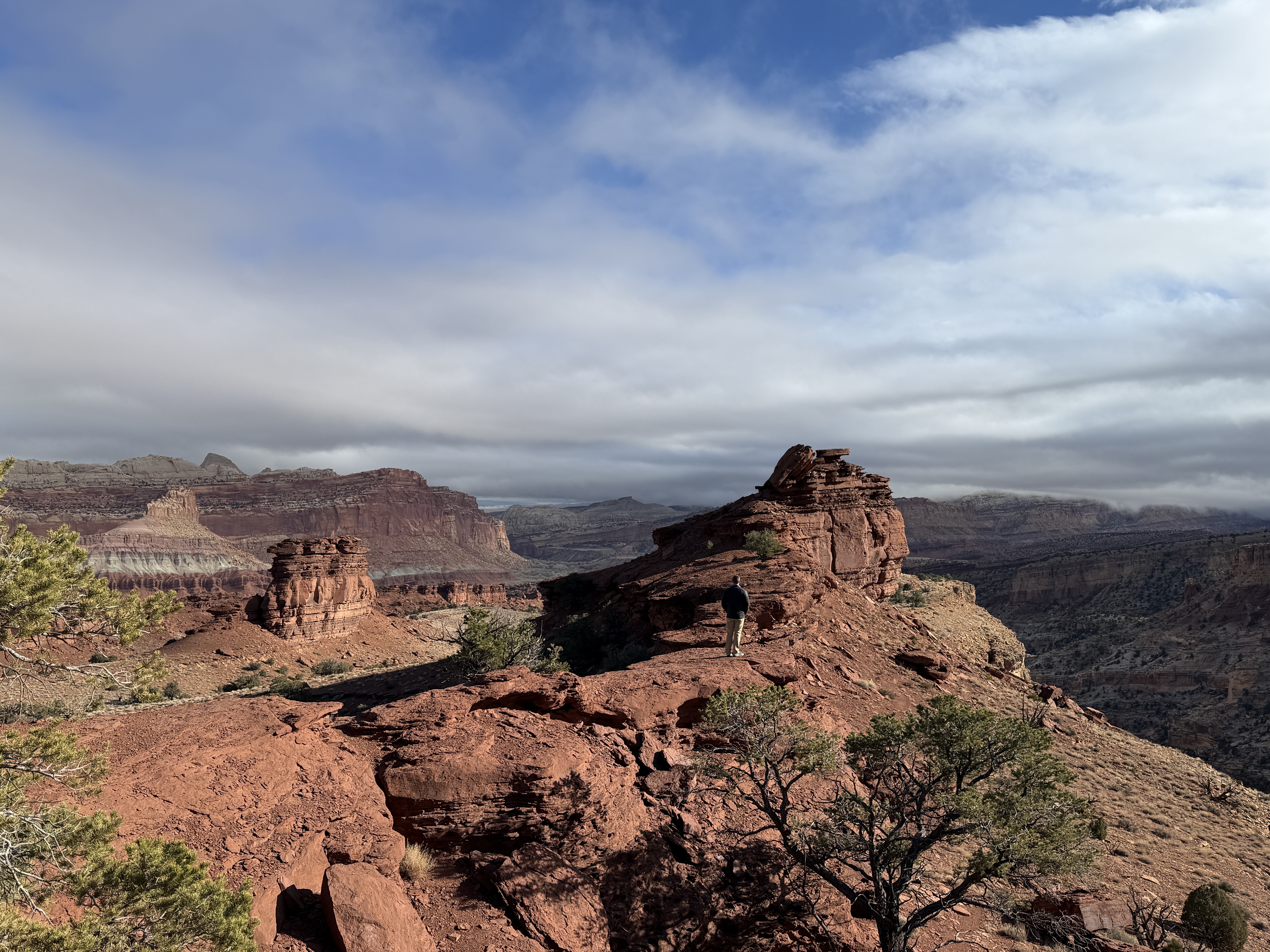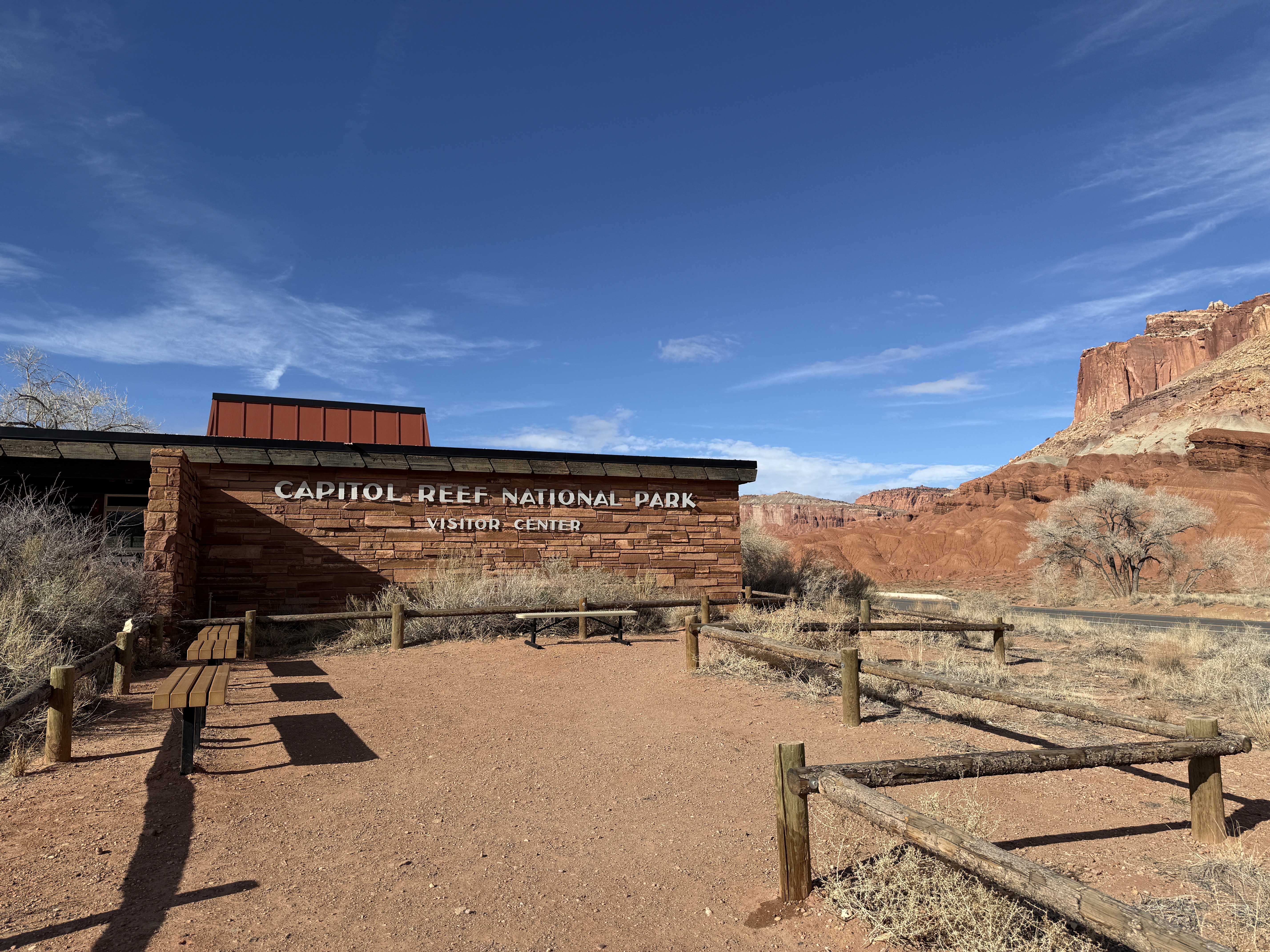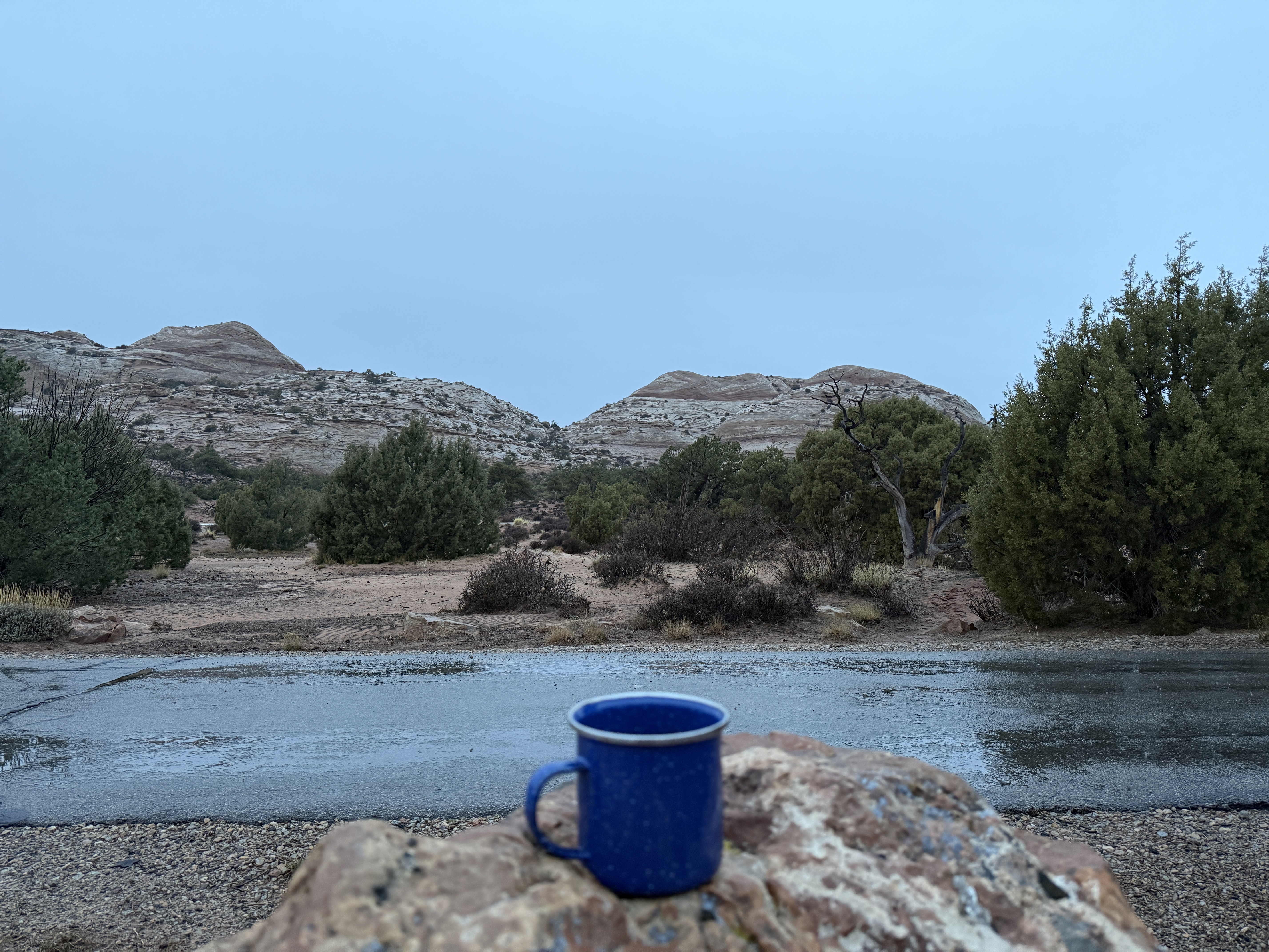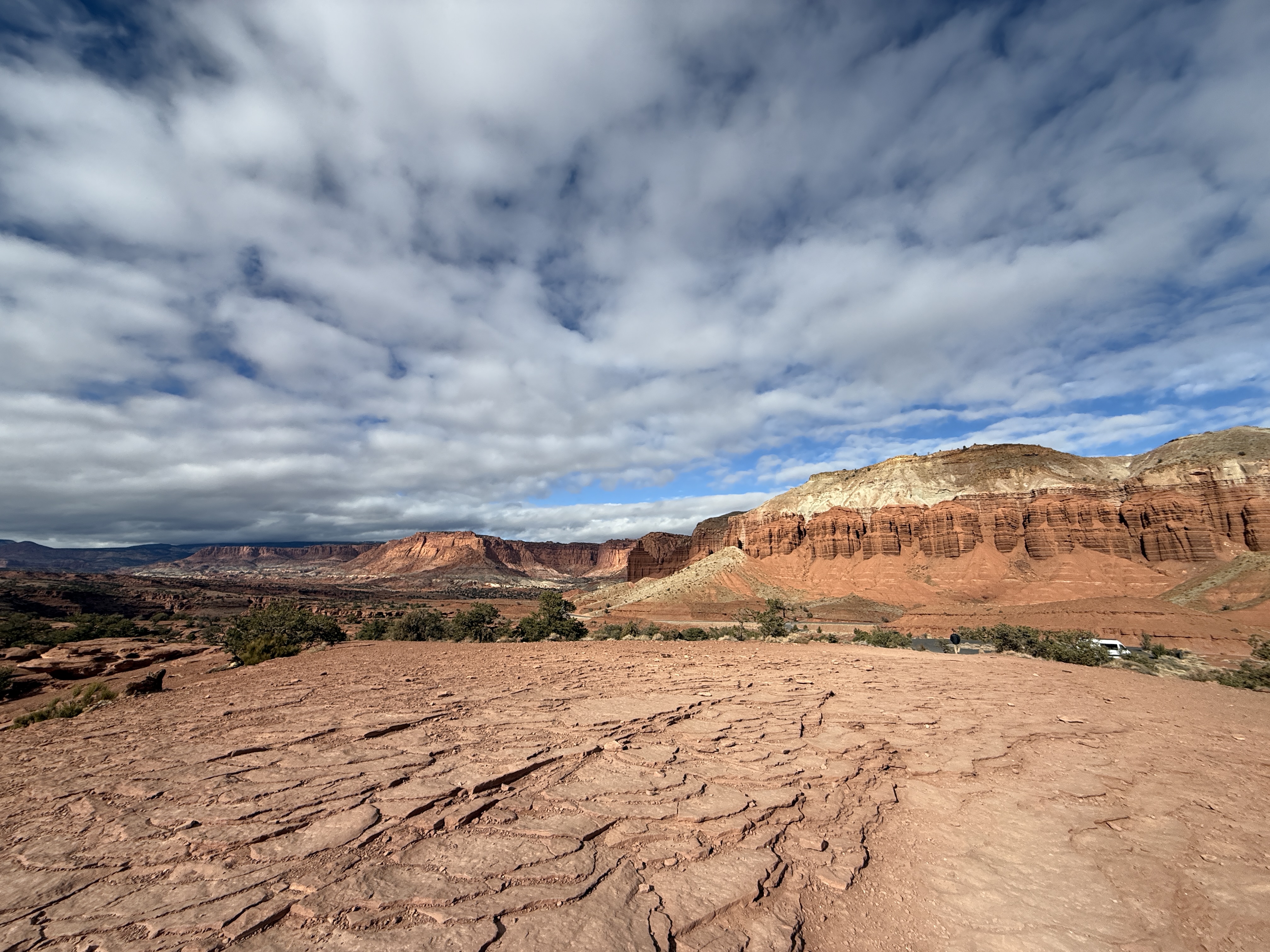 Happy New Year. We woke to rain and slush in Canyonlands. We wanted to hike to Mesa Arch on our way out, but it was not to be. Today was our move day to Capitol Reef where the sun was out.