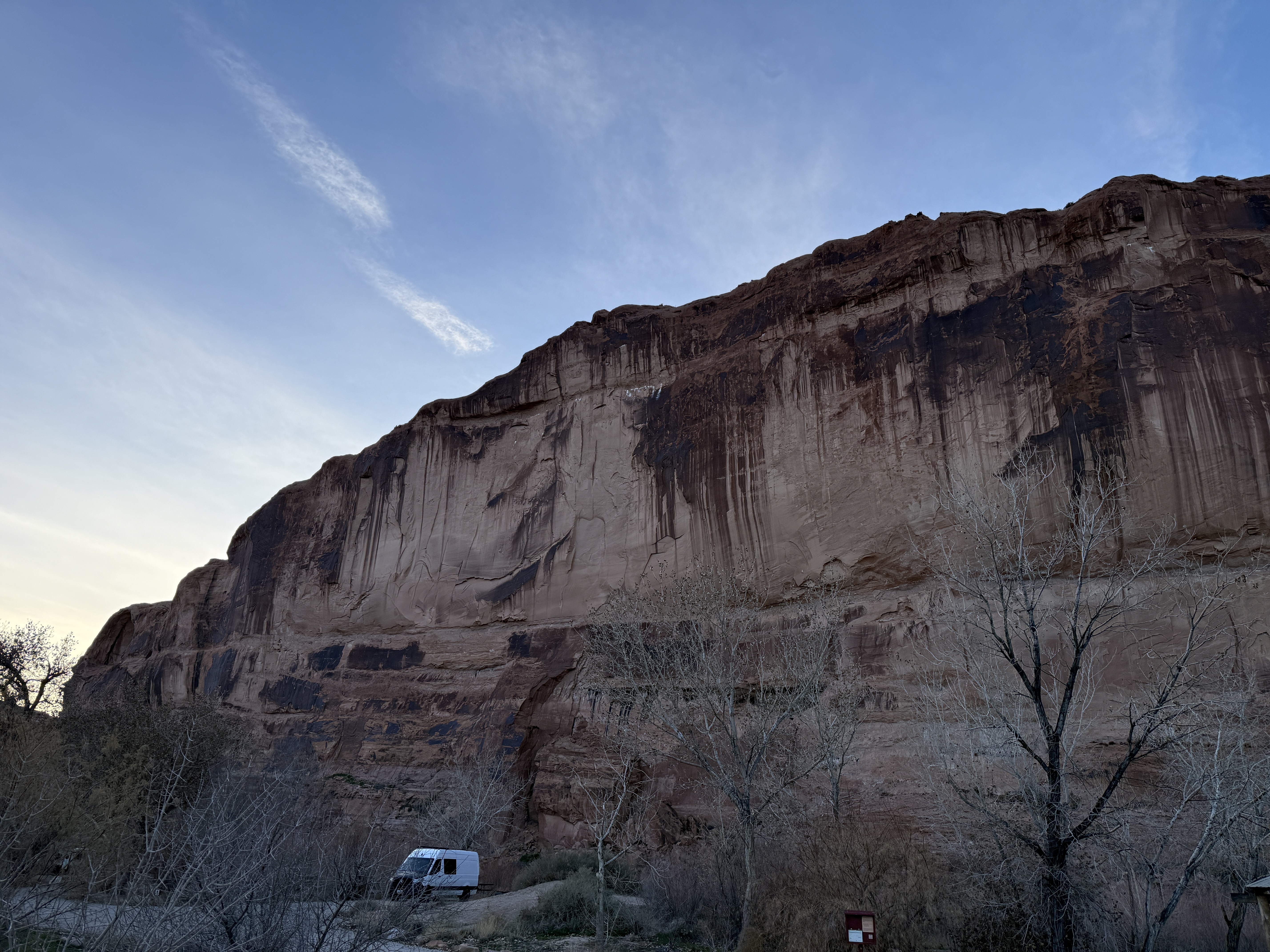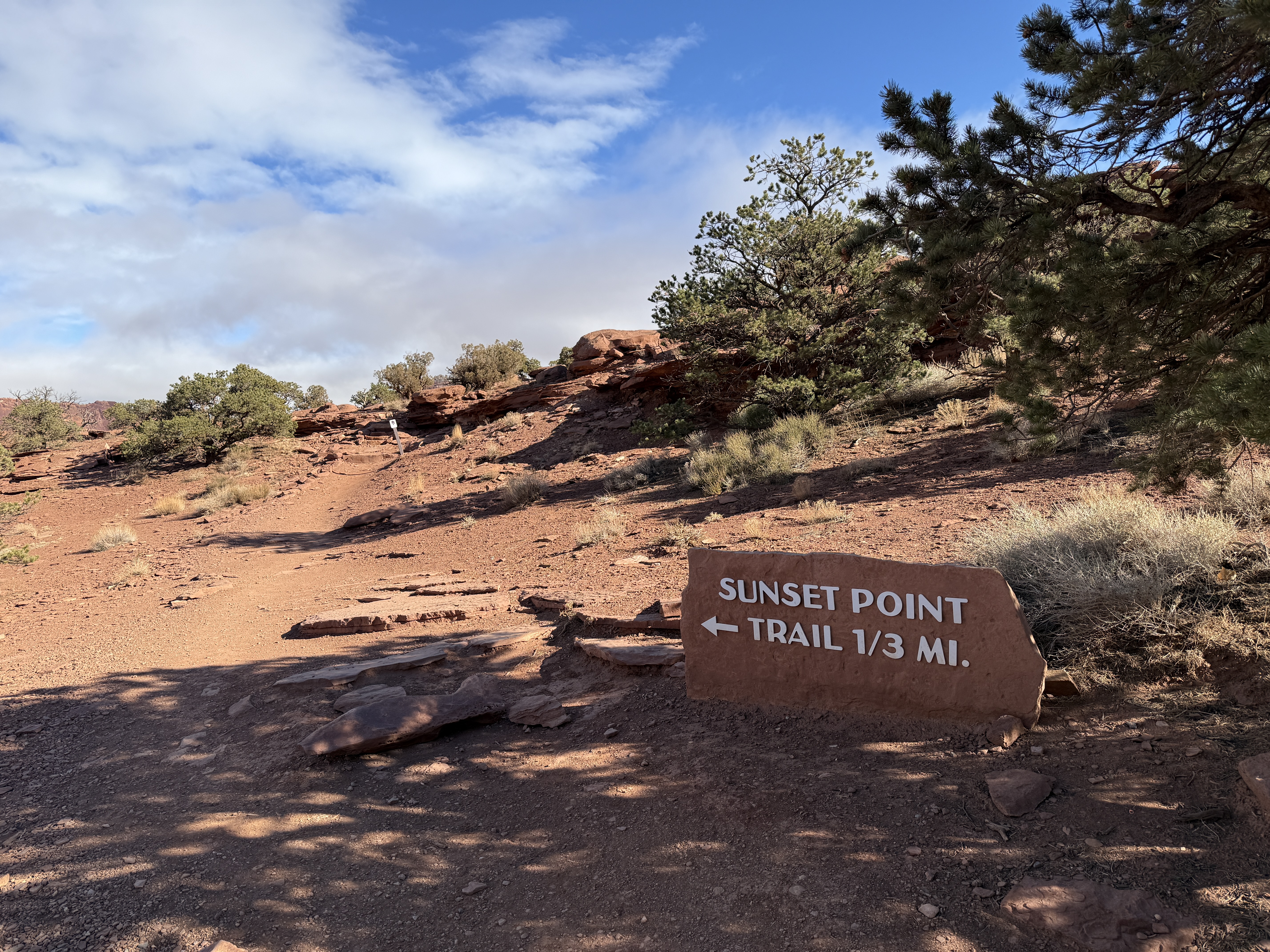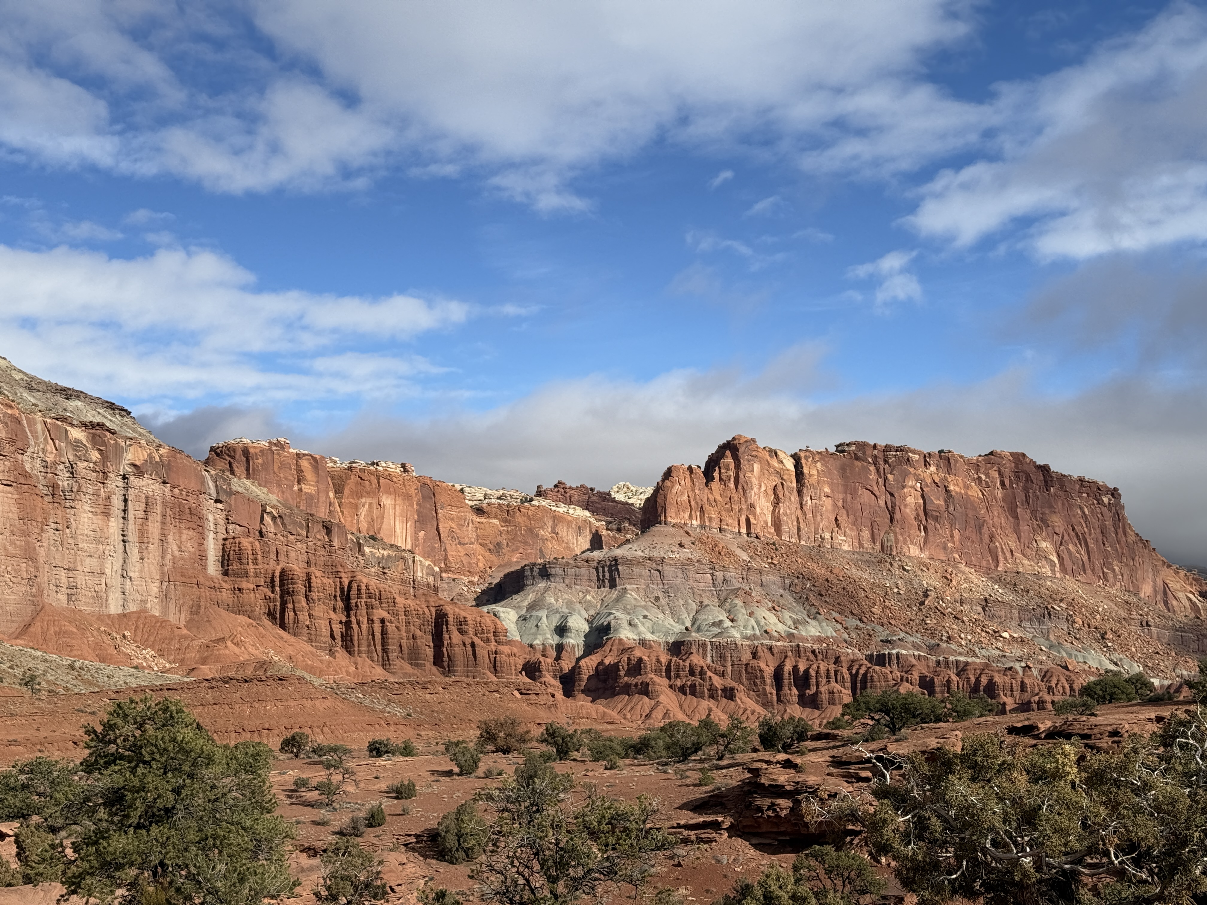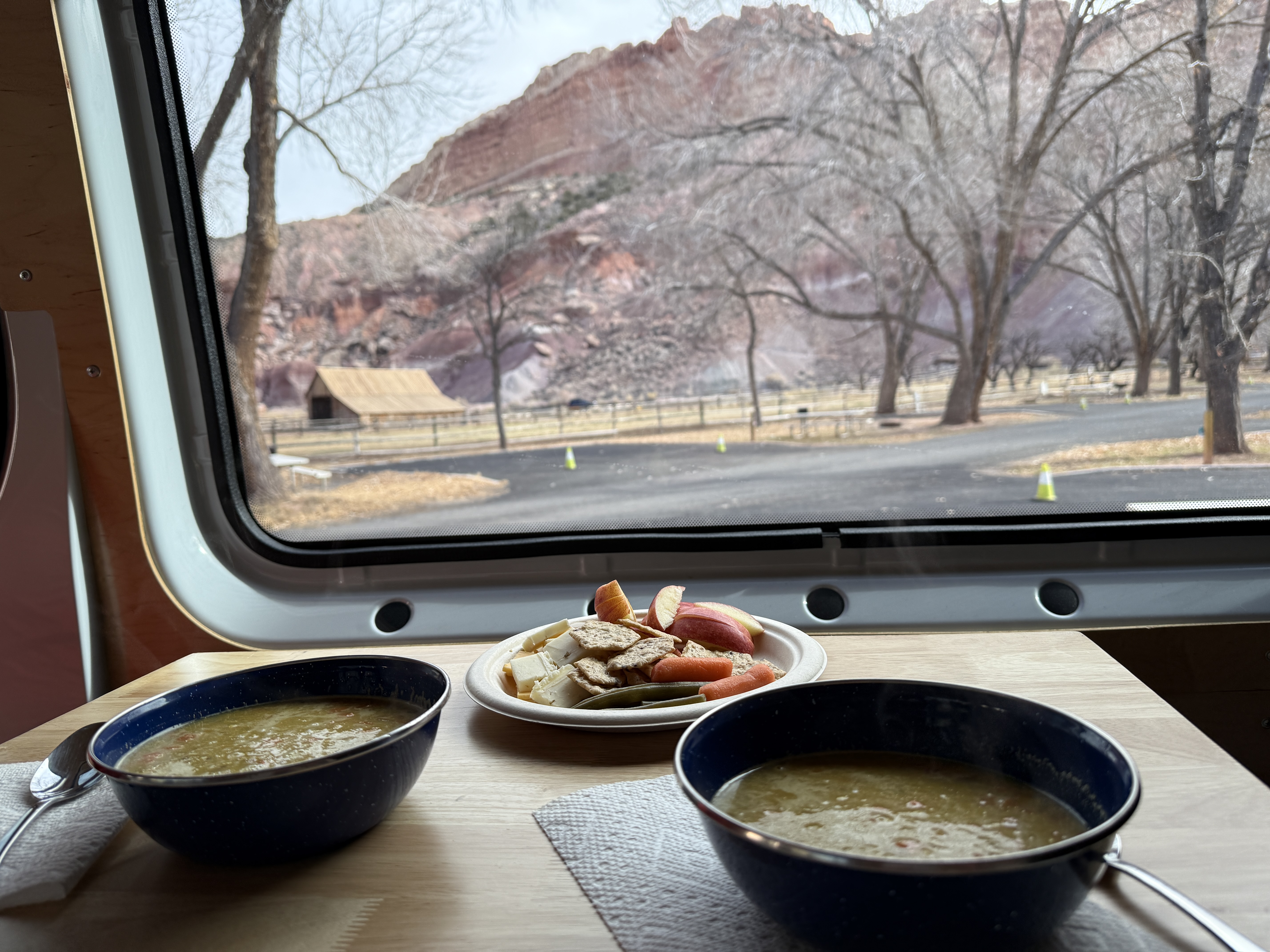 Happy New Year. We woke to rain and slush in Canyonlands. We wanted to hike to Mesa Arch on our way out, but it was not to be. Today was our move day to Capitol Reef where the sun was out.