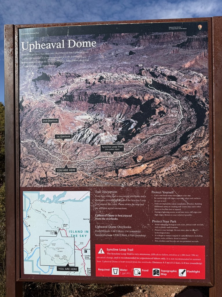 After claiming our spot we hiked Upheaval Dome to outlook 1 and 2.