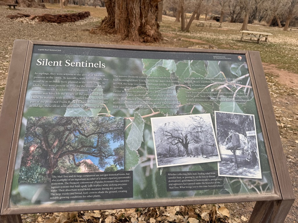 Once back at the campsite, we walked over to the “Mail” tree. Stunning cottonwood trees.